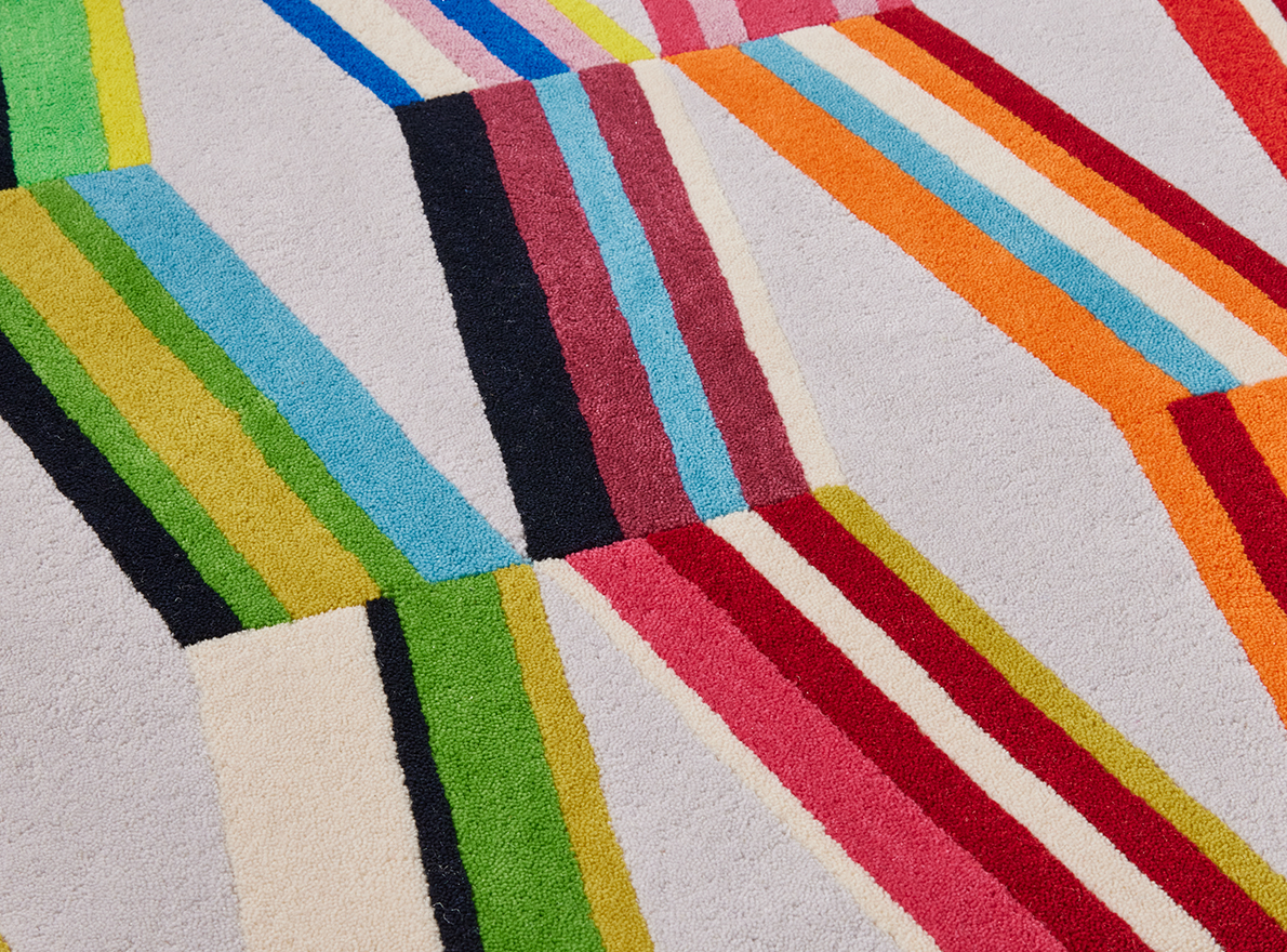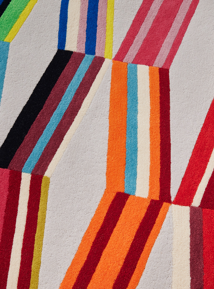 Hand-tufted in New Zealand wool, this iconic motif of Maison Pierre Frey consists of large multi-coloured diamond shapes laid on top of one another, just like a kaleidoscope. It perfectly illustrates the creative process of Patrick Frey, who is constantly playing with shapes and colours to keep his work fresh and exciting.