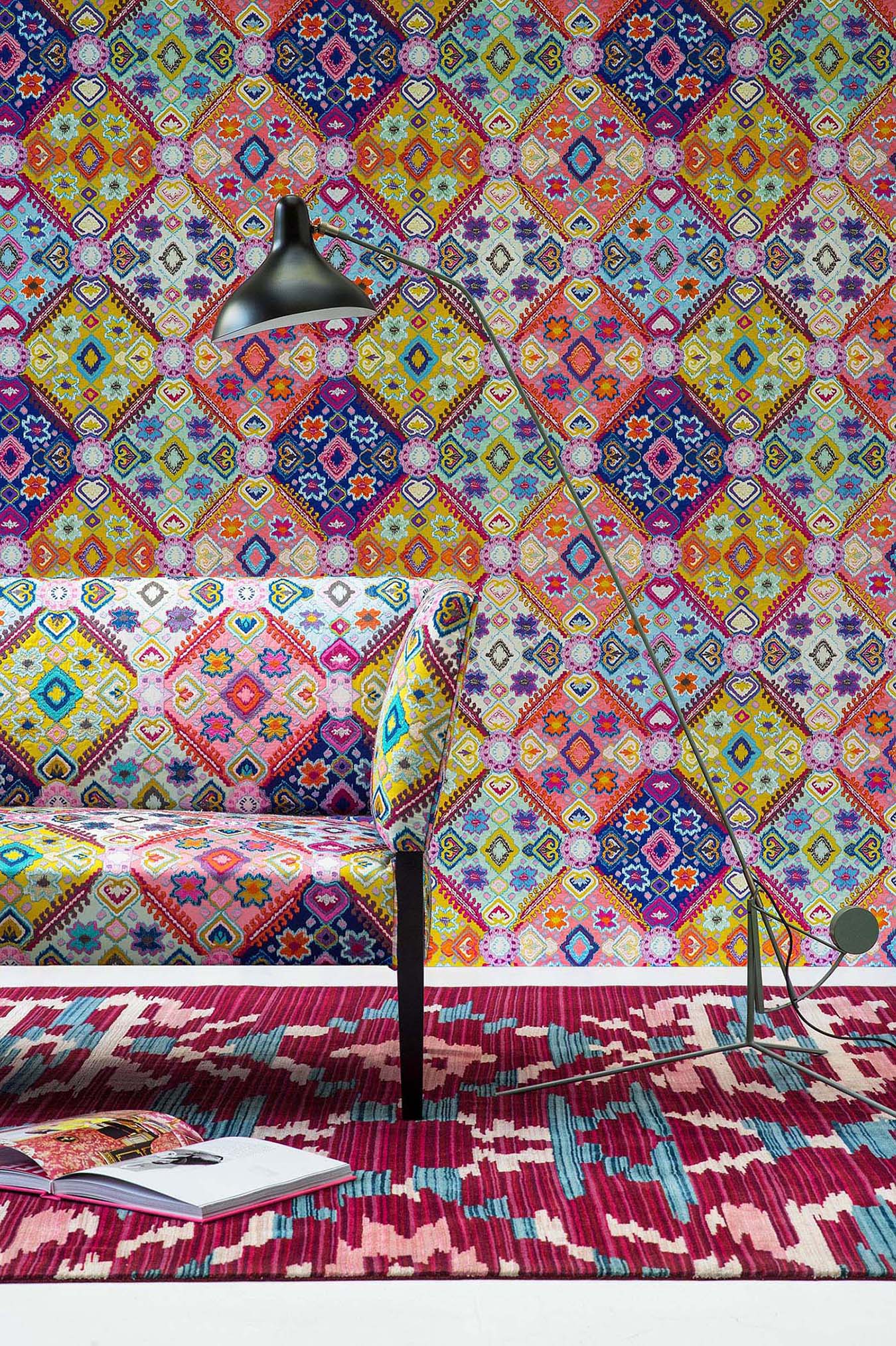 At Pierre Frey, the inspiration for a collection often originates from an encounter. In 2010, Patrick Frey and his team crossed the path of an individual who had explored South East Asia on foot. All along his travels, this passionate adventurer had collected textiles as an illustration of the ancestral artistry of often overlooked ethinicities. It is through this encounter that the team discovered the MIAO people, living in the Guizhou province of China, shielded by the moon mountains. The Maoming collection is an invitation to discover the mysterious power of the Miao art, based on the crafting of indigo and a diversity of colors. Geometric patterns and tie-dye effects in bright, shot silk colors evoke the talent and know-how of the Miao women.