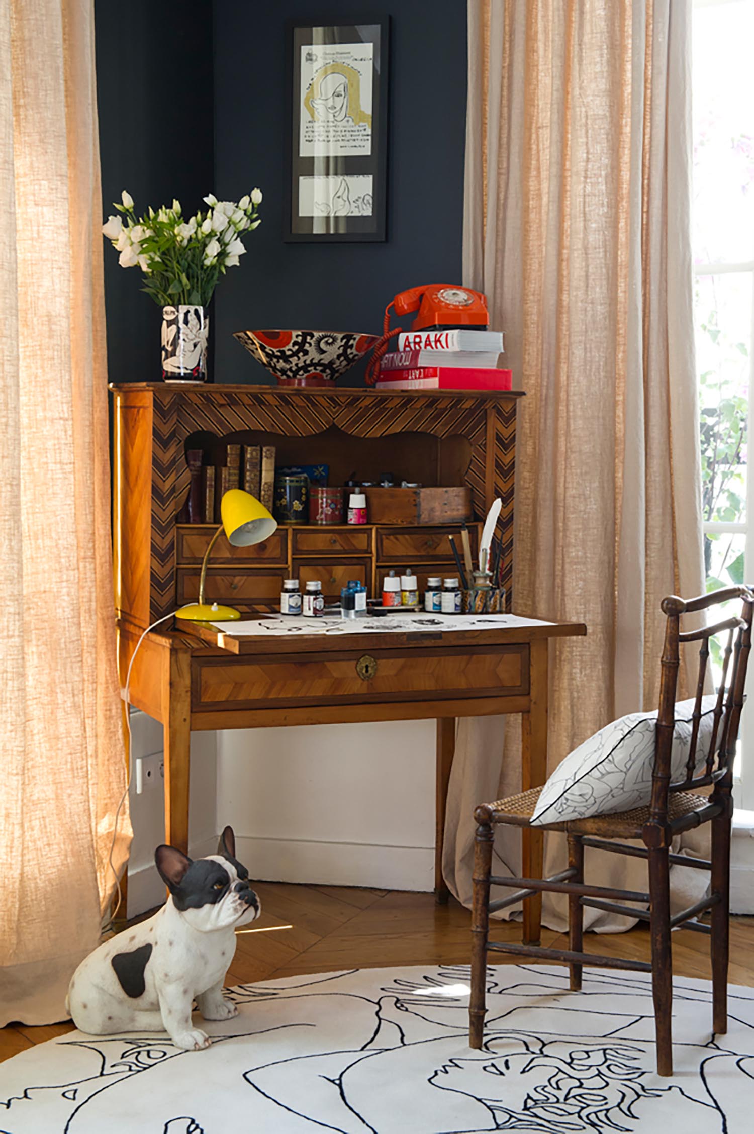 Louise Bourgoin, the actor takes on the role of fabric designer. Passionate about drawing since the age of 12, Louise Bourgoin followed her dream by attending and graduating from the Ecole des Beaux-Arts in Rennes in 2004. However fate intervened with her promising future as an art teacher when she was selected by Le Grand Journal of Canal + (the French TV network) to be their weather girl from 2006 to 2008. With her focus now on building her acting career, her love of drawing was put on hold but never extinguished. She was known to create sketches of fellow actors and scenes from her life in film, giving them away as gifts to those around her.