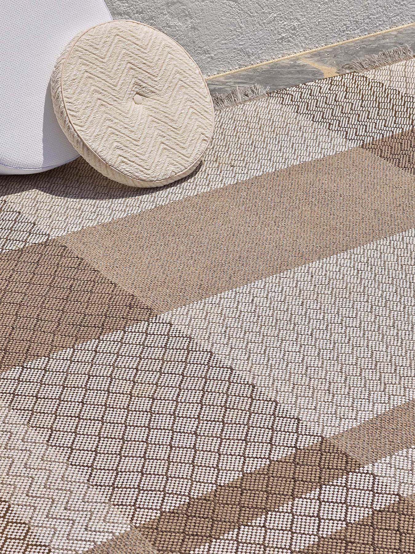 A veritable patchwork of warp and weft patterns, the PATCH rug is an OUTDOOR rug designed in a graphic scheme. Unlimited combination of small geometrics in weft stripes, punctuated by contrasting jumps of colours.