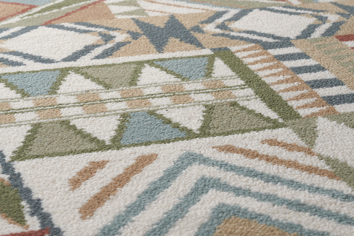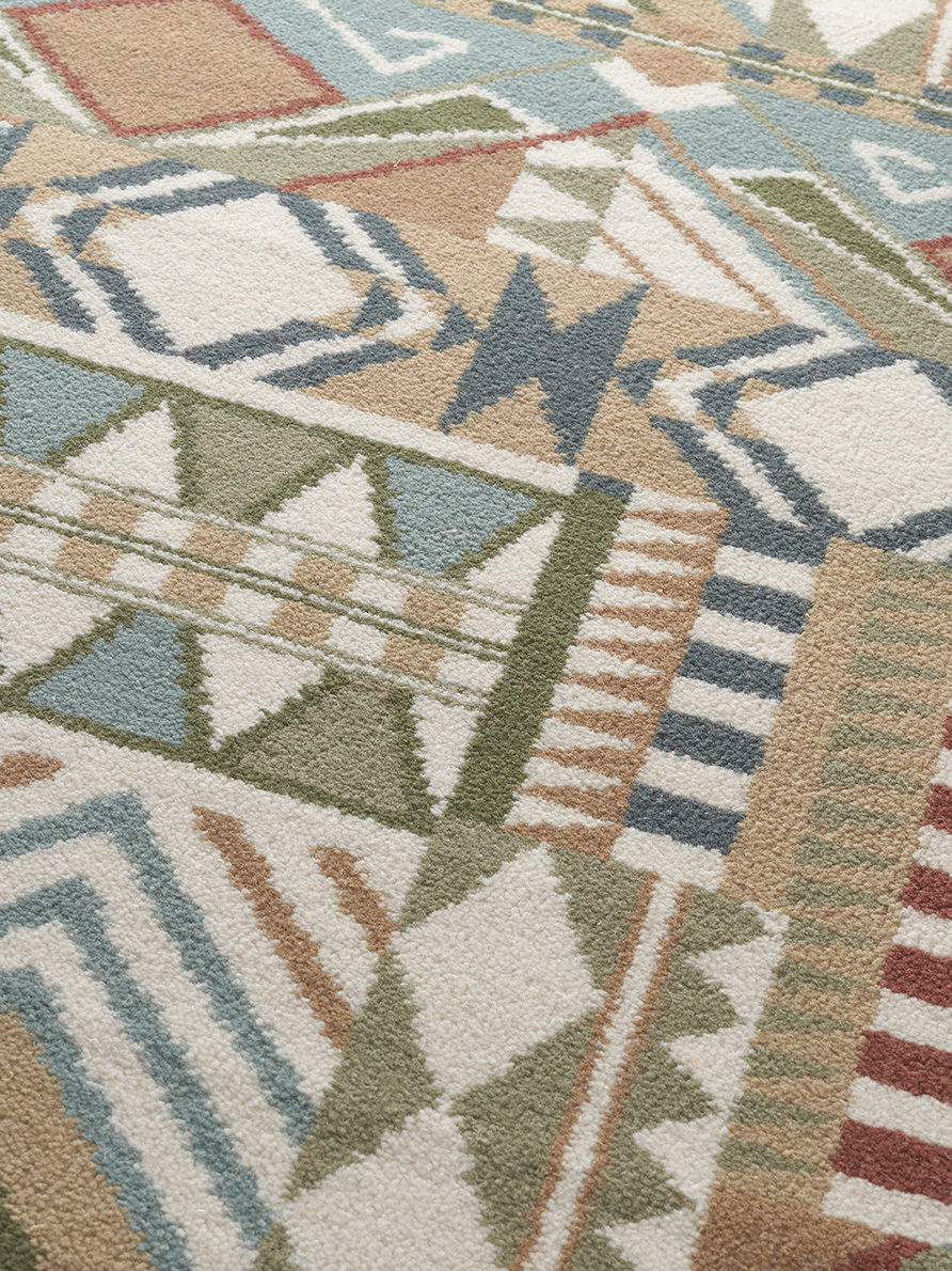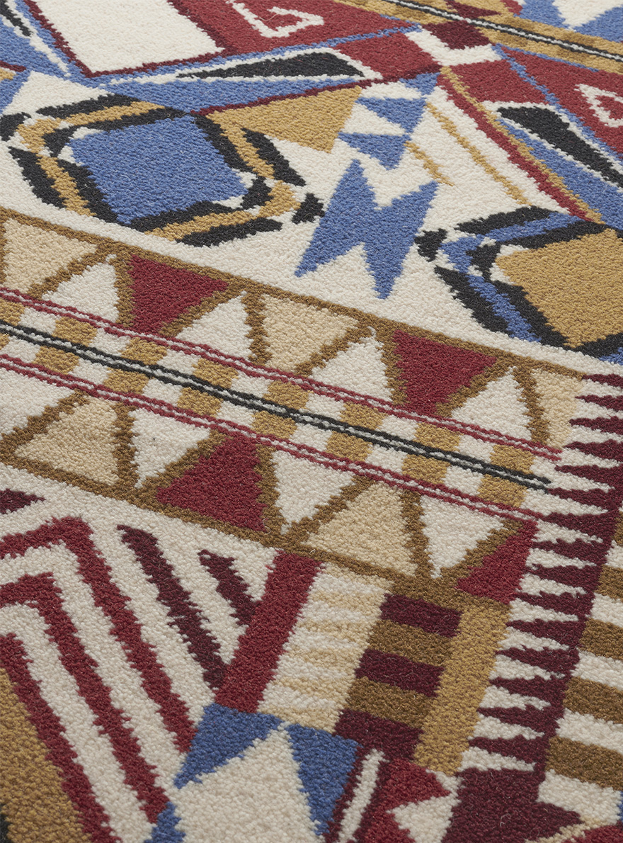 Linear and geometric, this brightly colored composition explores the multiple forms of South America. Woven carpet in 8 colours.