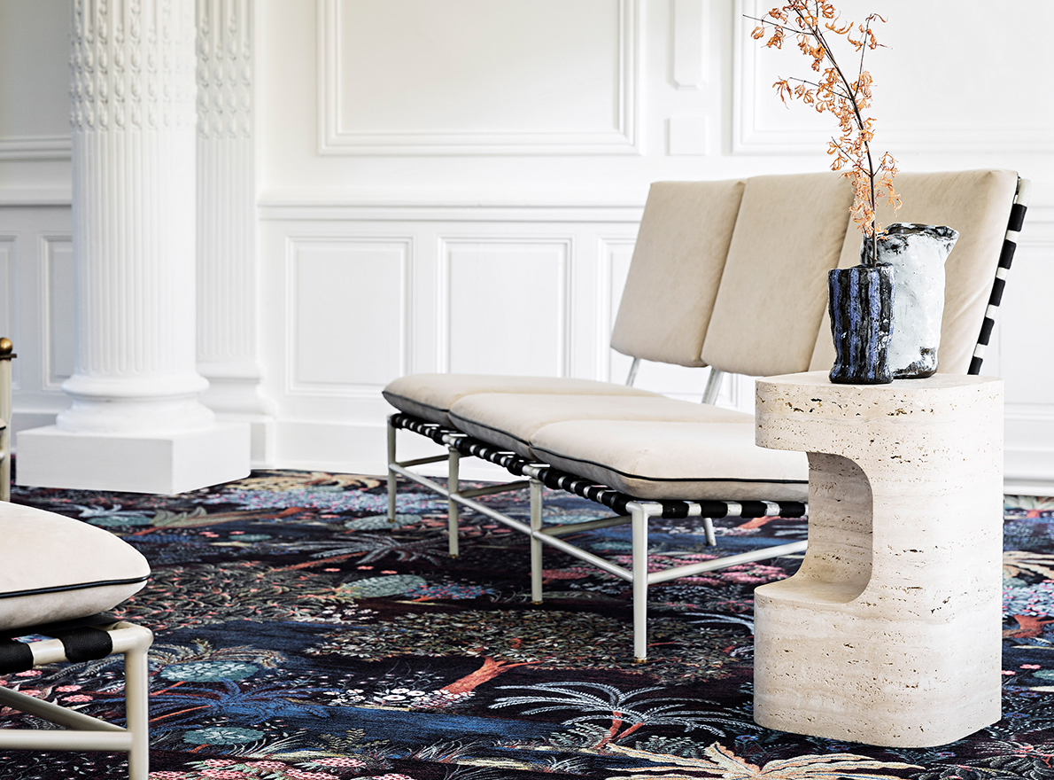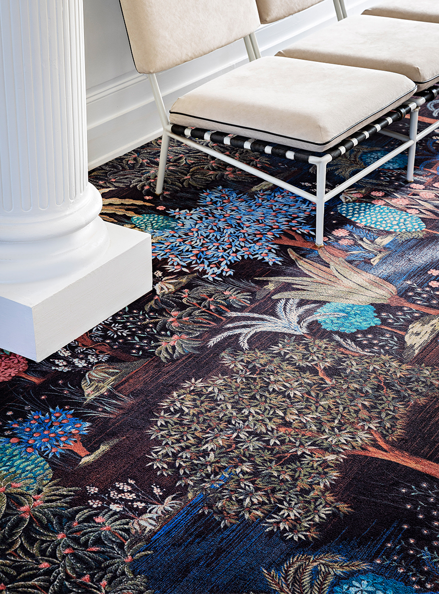 Building on the quality and reputation of Pierre Frey's constantly renewed, protean and eclectic designs, the company's custom-made carpets department is extending the concept to the floor and offering a unique collection of printed carpets based on iconic designs, the DESSINS SIGNATURE.