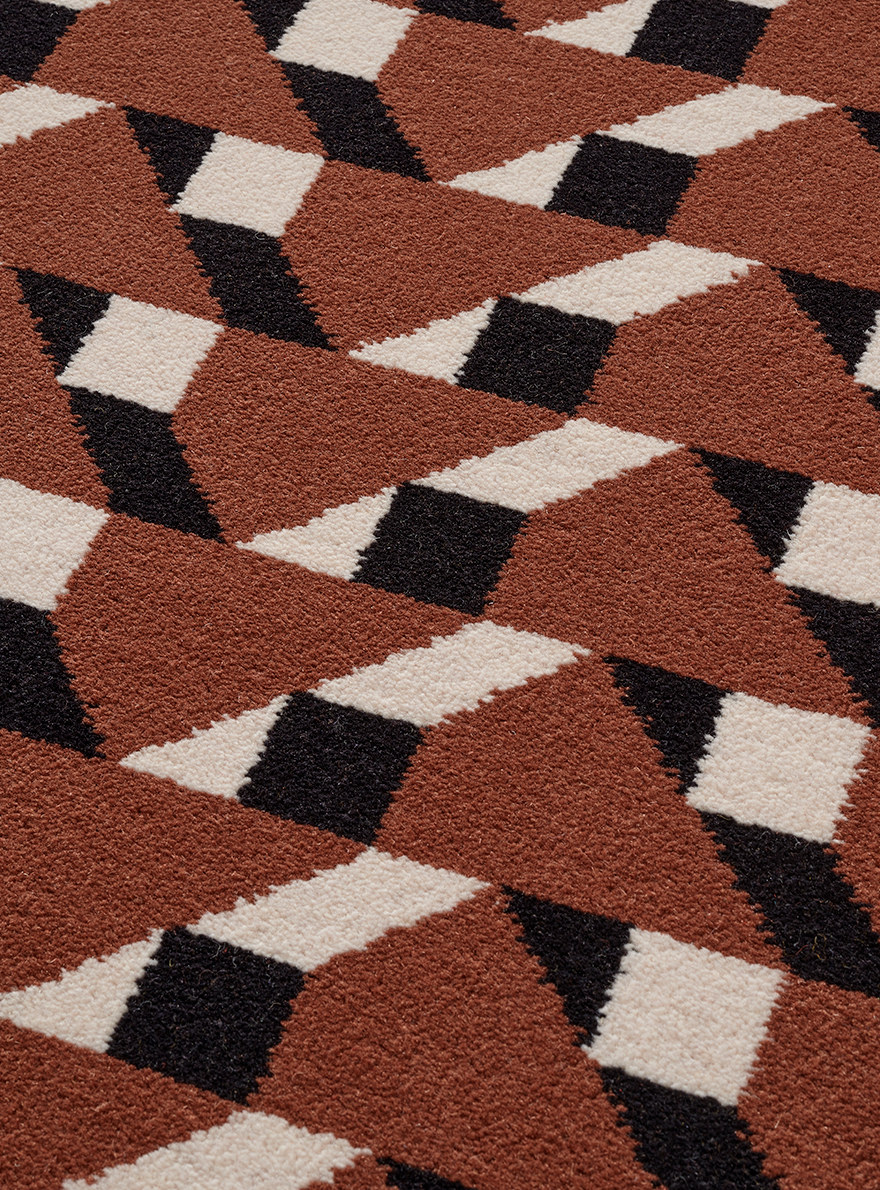 DIMITRI revisits a work of art by the Russian constructivist artist Lyubov Popova from the early 20th century. Its geometric pattern plays on contrasts of color and black and white. Woven in large widths for a carpet resistant to the most intensive use.