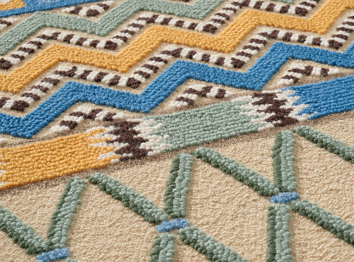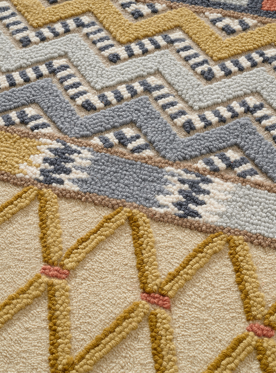 Inspired by a funerary ornament from the Late Period exhibited in the Department of Egyptian Antiquities of the Louvre Museum, ABYDOS takes the fishnet shape of the work of art and offers a beautiful play of textures thanks to different wool loops. Hand-tufted, the relief of its design evokes the richness of the ornaments that decorated the mummies' shrouds.
