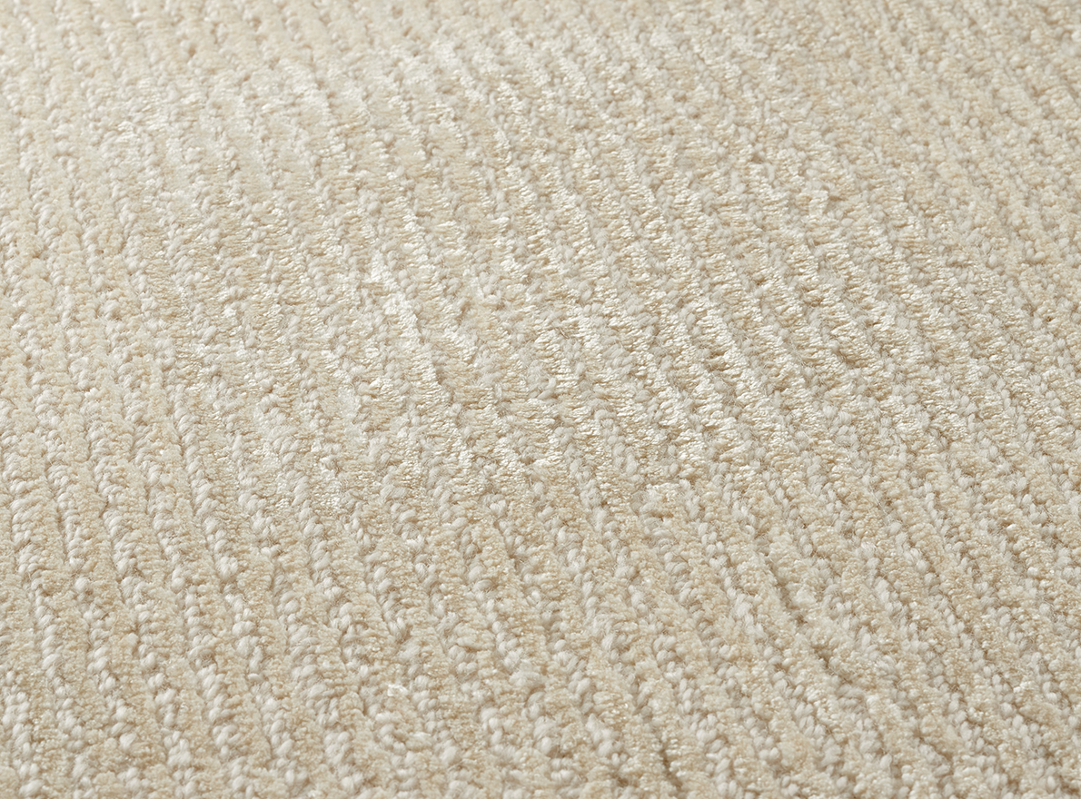 Fine shiny stripes alternating bamboo cut pile and New Zealand wool loop pile.
