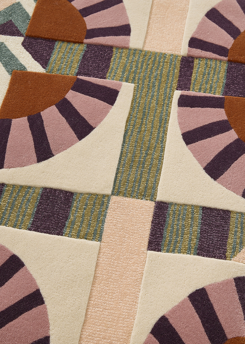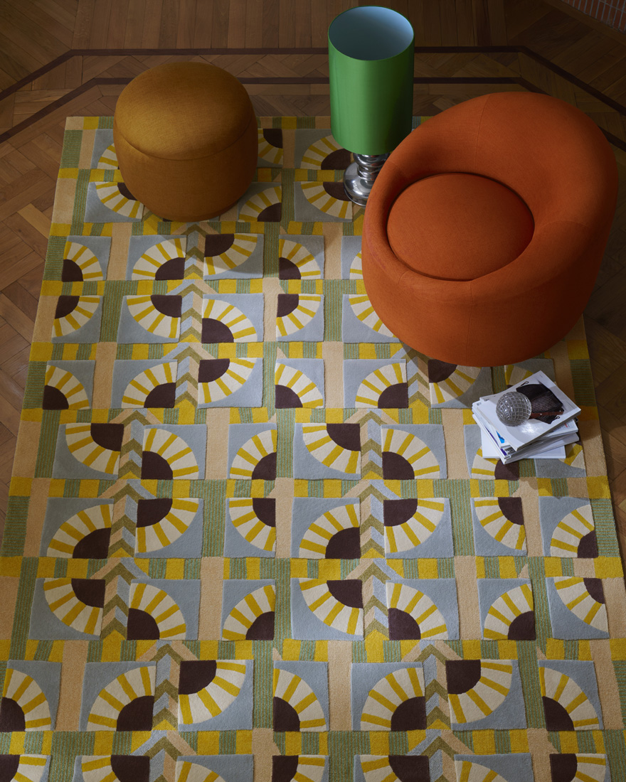 POPPY is a dynamic and joyful contemporary composition that evokes colorful and dancing rays of sunshine. Hand-tufted in New Zealand wool, it is available in two colorways.