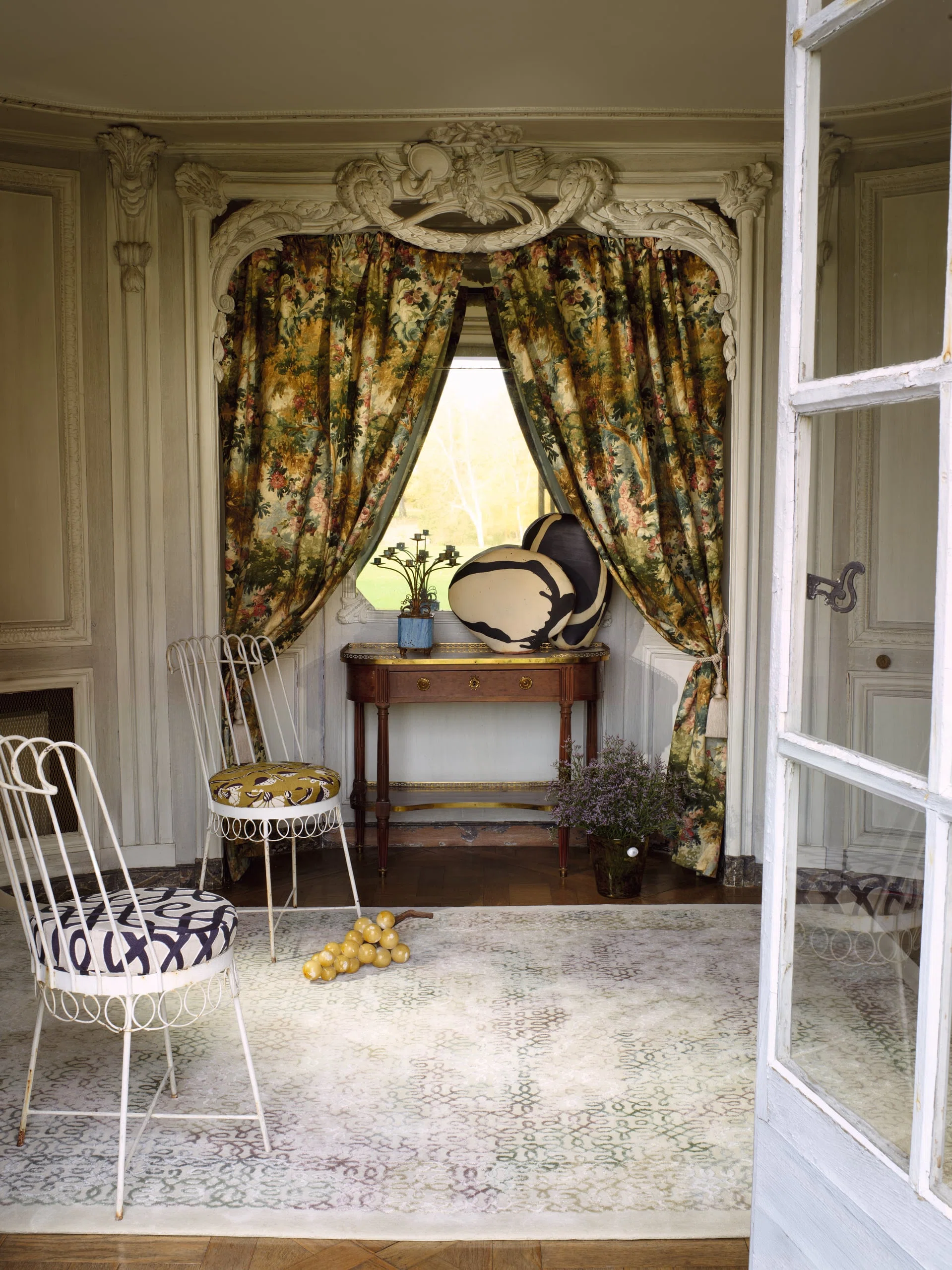 With its signature eclecticism, Maison Pierre Frey revisits the theme of French gardens with both elegance and audacity. The designs evoke lush vegetation while revealing the subtle geometry of formal garden layouts. Inspired by contemporary creations as well as exceptional archival documents, the collection feels timeless, radiant, and unmistakably French in spirit.