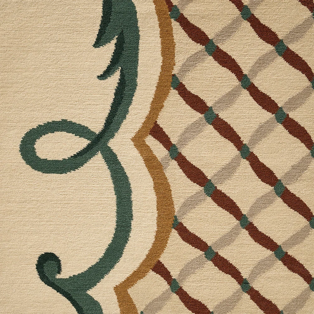 Inspired by a gouache carpet design by Engliger dating from the 1930s and preserved in the Pierre Frey archives, MERCŒUR draws its essence from the symmetrical elegance and geometric rigor of French formal gardens. Hand-knotted in Nepal, it is adorned with a trellis and stylized acanthus leaves reinterpreted in a contemporary manner. The overall effect evokes a garden, combining architectural rigor with the movement of plants.