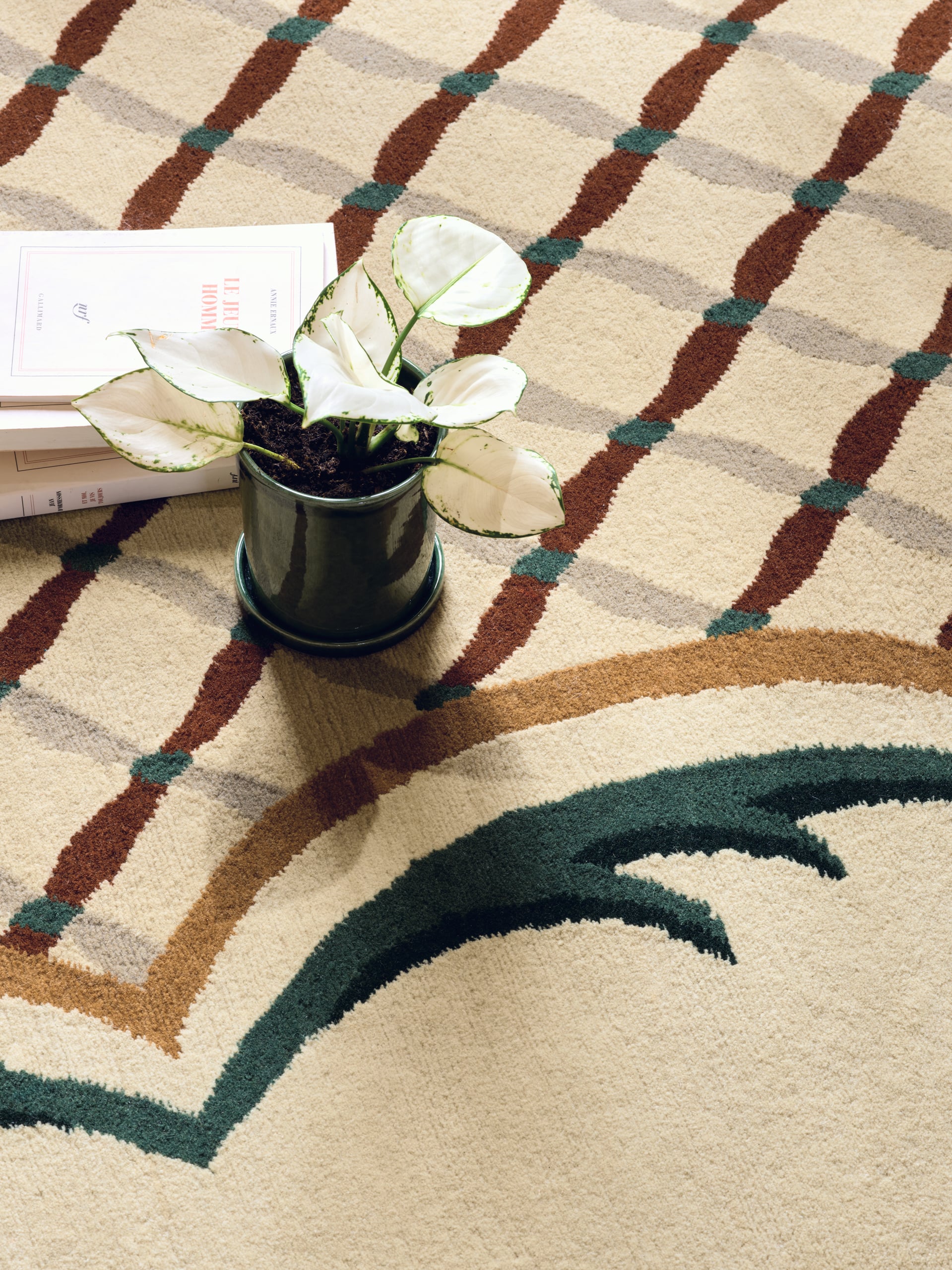 Inspired by a gouache carpet design by Engliger dating from the 1930s and preserved in the Pierre Frey archives, MERCŒUR draws its essence from the symmetrical elegance and geometric rigor of French formal gardens. Hand-knotted in Nepal, it is adorned with a trellis and stylized acanthus leaves reinterpreted in a contemporary manner. The overall effect evokes a garden, combining architectural rigor with the movement of plants.