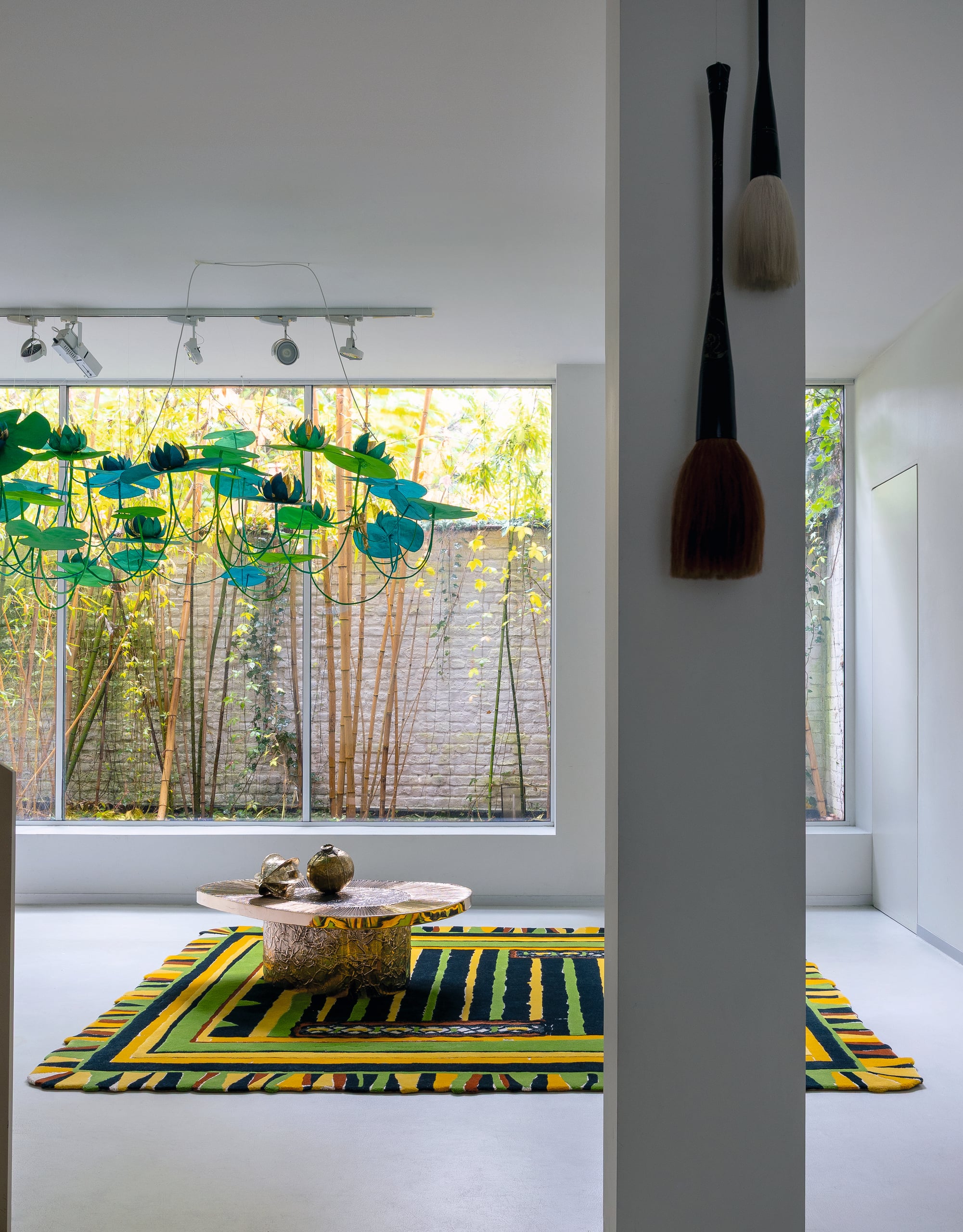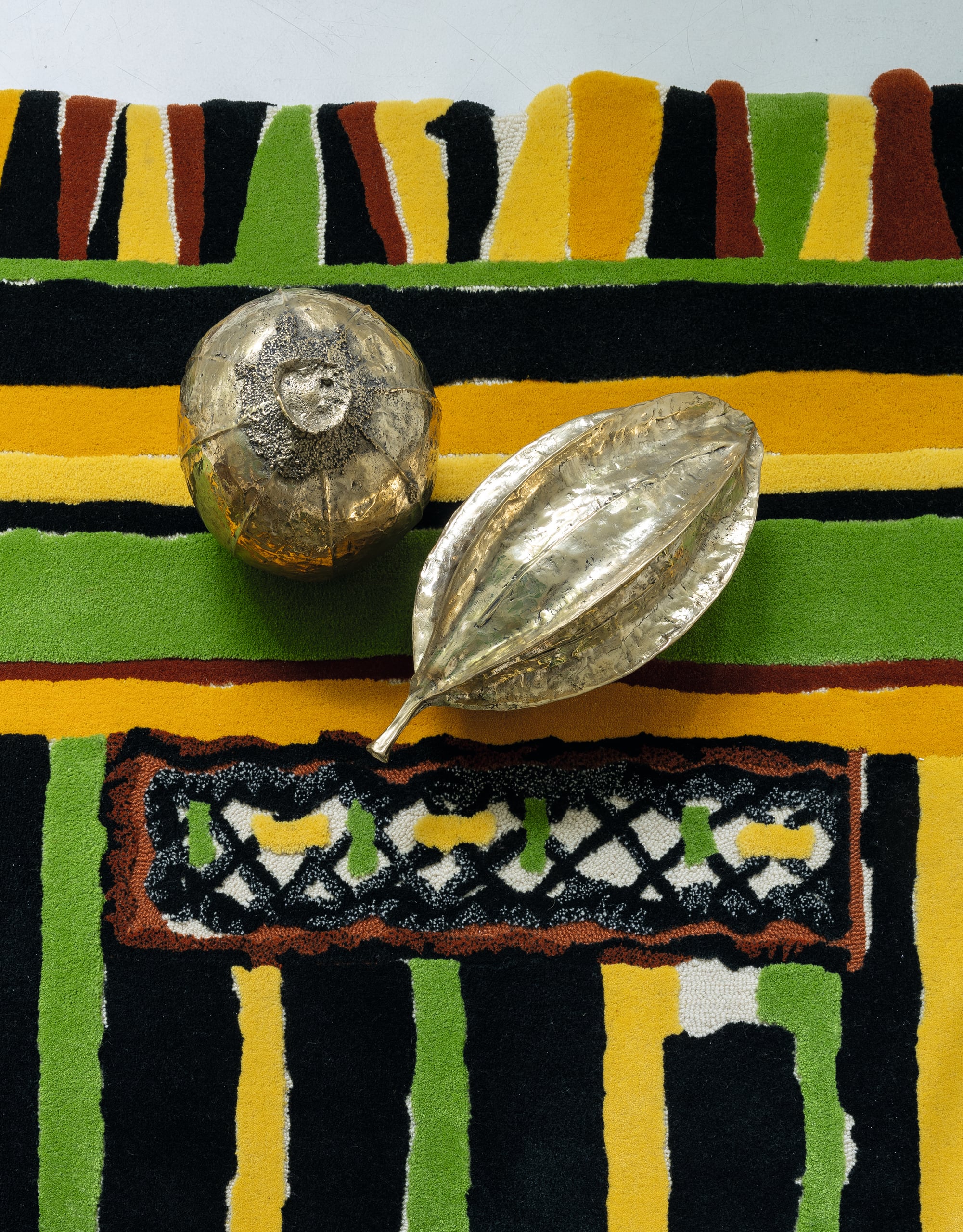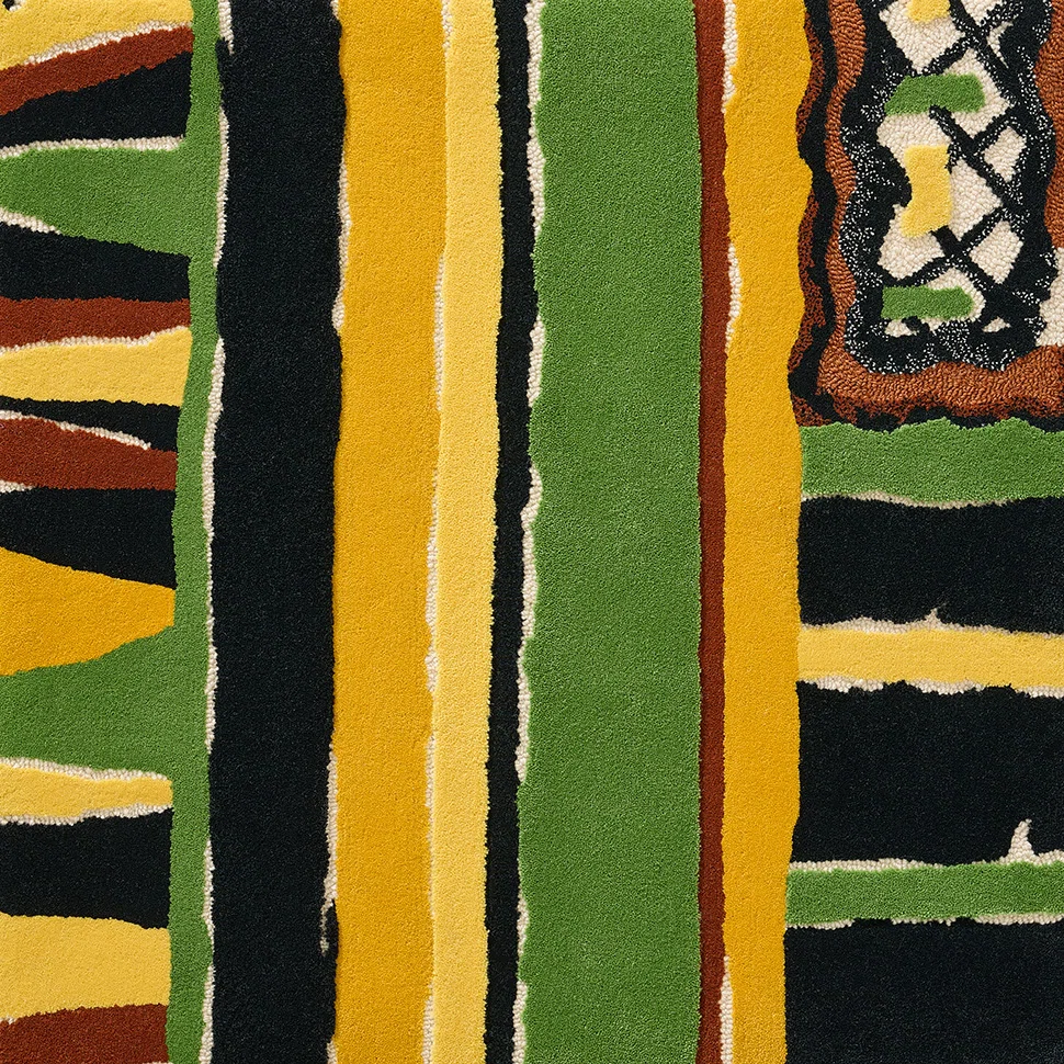 Now here in hand-tufted, the rug reveals a fine loop between different heights of cut pile, reminiscent of the paper cutouts in the original work.