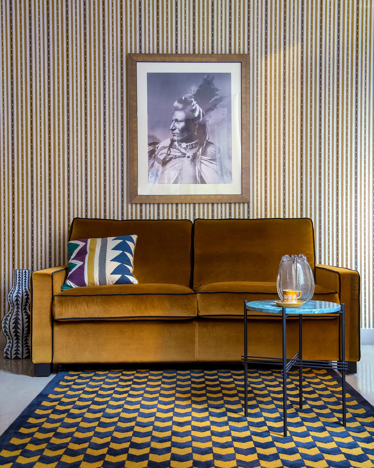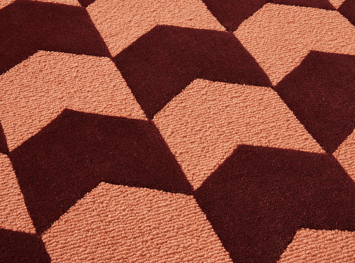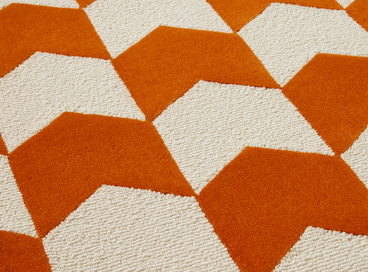 Contemporary and graphic interpretation of a neo-medieval motif evoking the banners of knights. Hand-tufted, alternating New Zealand wool cut and loop pile.