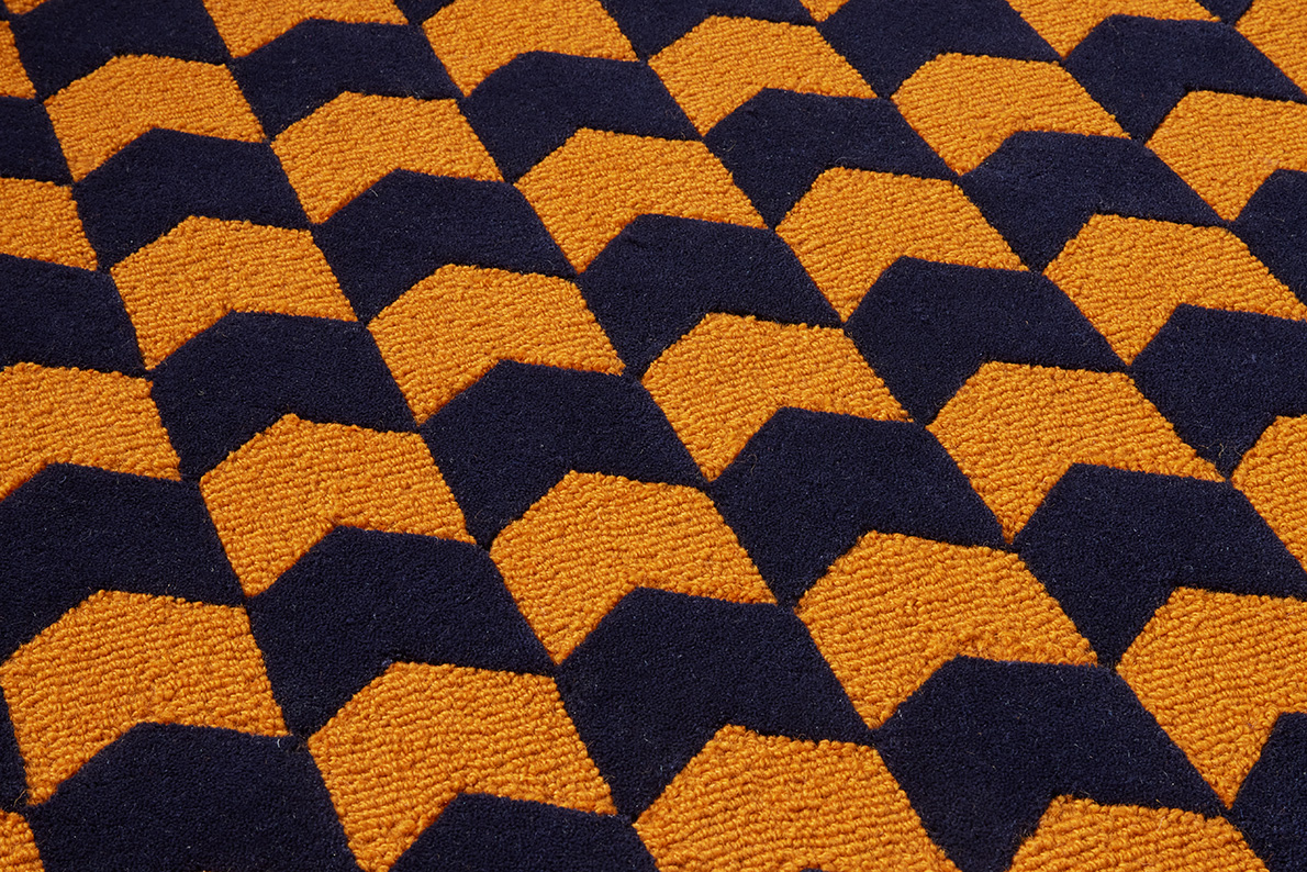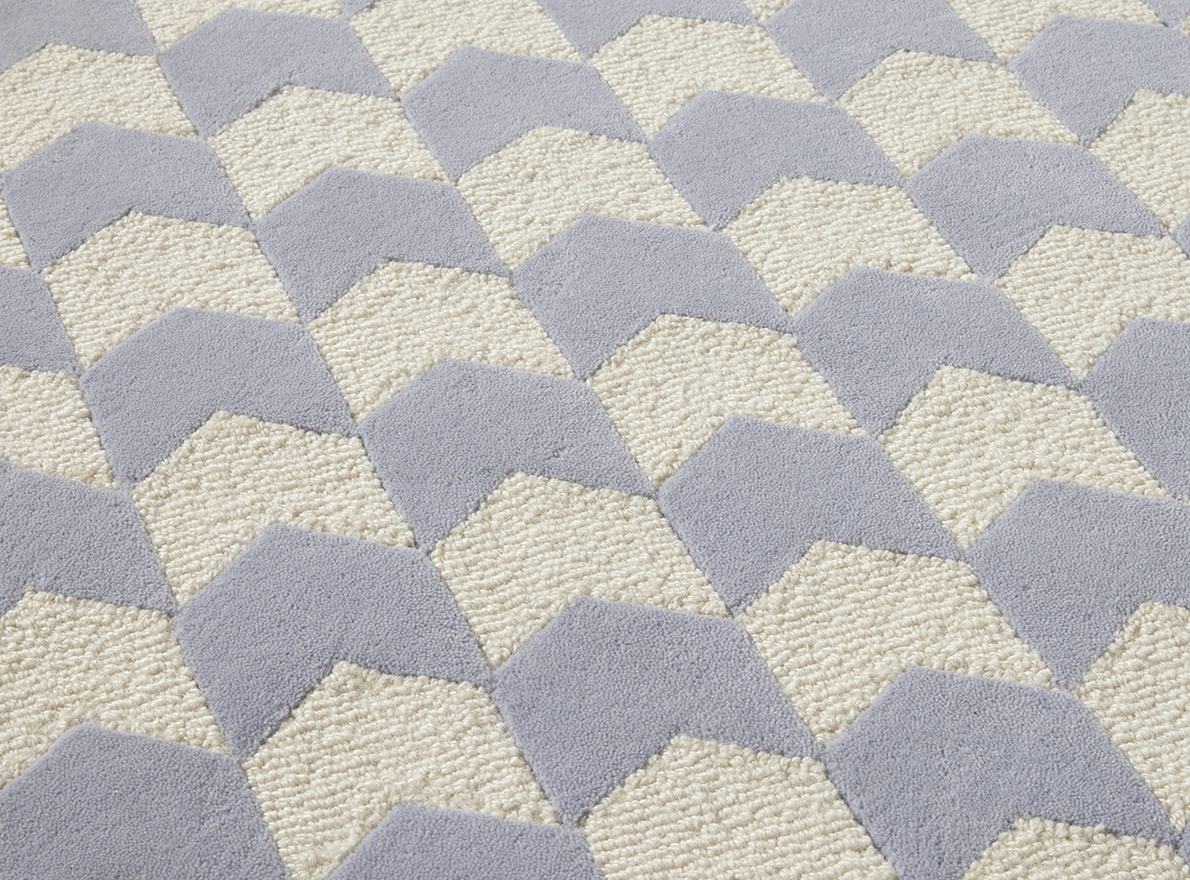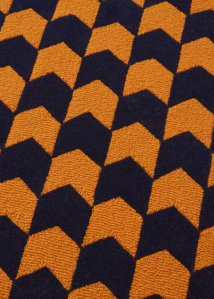 Small scale version of a contemporary and graphic interpretation of a neo-medieval motif evoking the banners of knights. Hand-tufted, alternating New Zealand wool cut and loop pile.