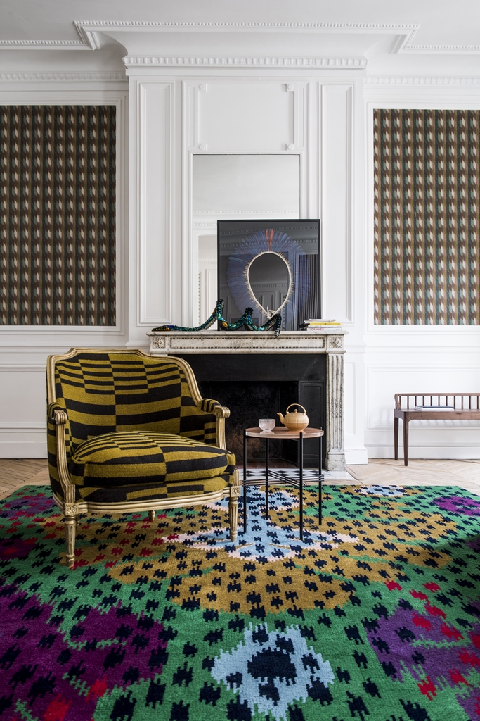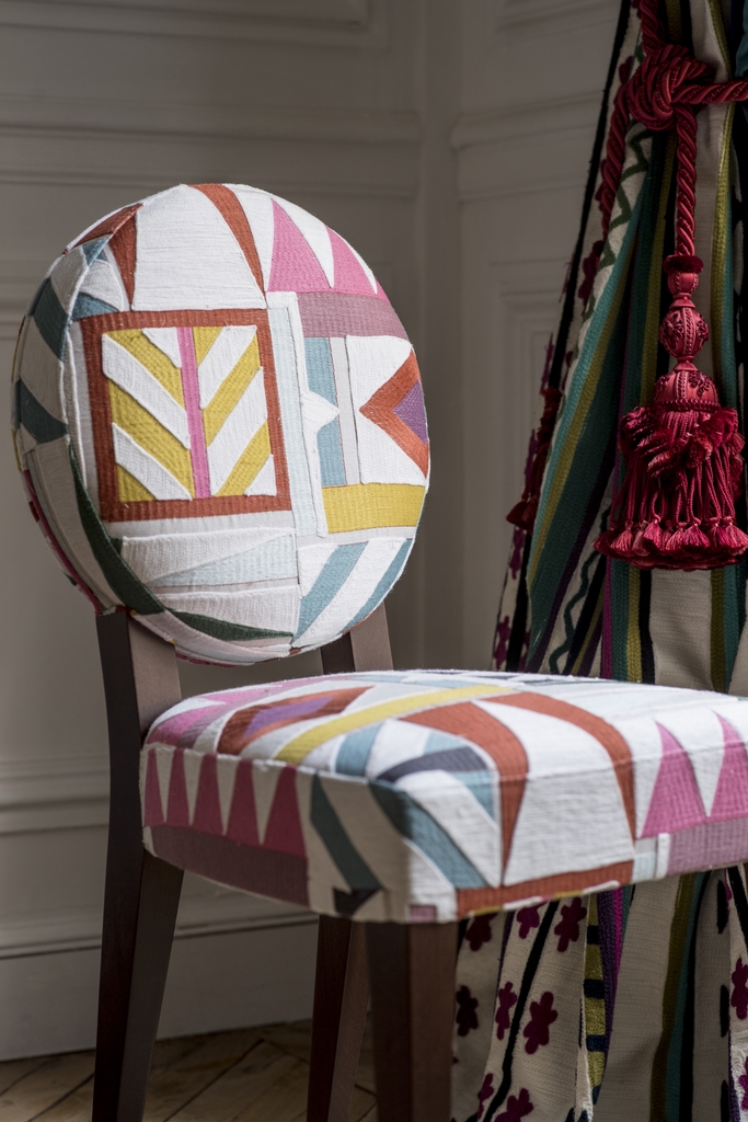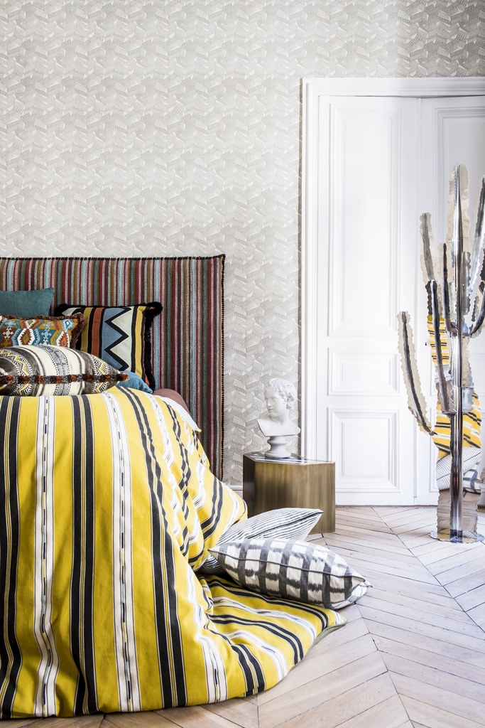 Imagination and reinterpretation have taken the lead in the combination of designs and the very modern chromatic range. Colors echo each other, sometimes in traditional ochers and blues, sometimes in bold and contemporary shades, with mixtures of water lily purple, mimosa and emerald green.
