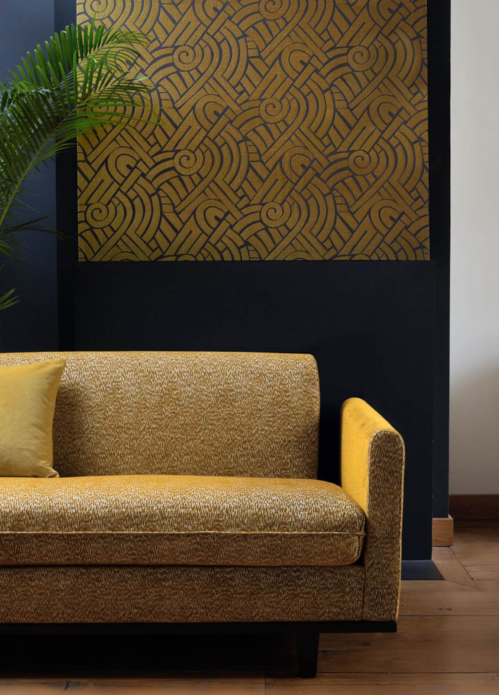 The development and decoration of liners from the French Line shows the influence of this style. The appetite for life following the end of World War I blossomed as a great creative flurry in the arts. The Charleston Collection takes another look at this inventive and exciting period of our common history, where the luxury of materials and the simplification of shapes transformed the interiors of amateurs and patrons.  Plain and chiseled velvets, refined embroideries, stylized jacquards, tone-on-tone fabrics evoking sharkskin and precious voiles make up an inspired and contemporary reworking of Art Deco. The subtle range of blacks, gray, creams, blues and antique pinks is highlighted with shiny accents of gold and silver, a nostalgic echo of dresses from the Roaring Twenties.