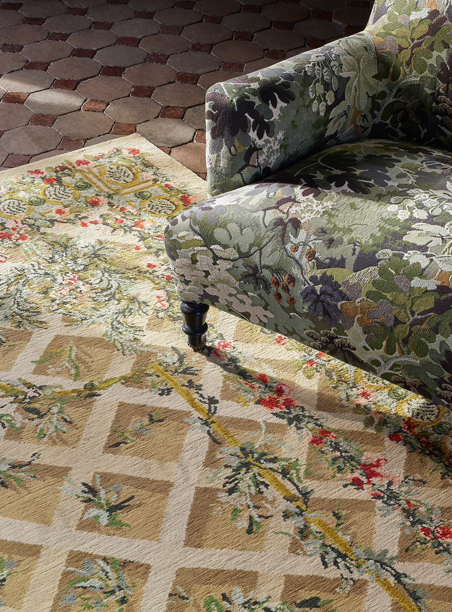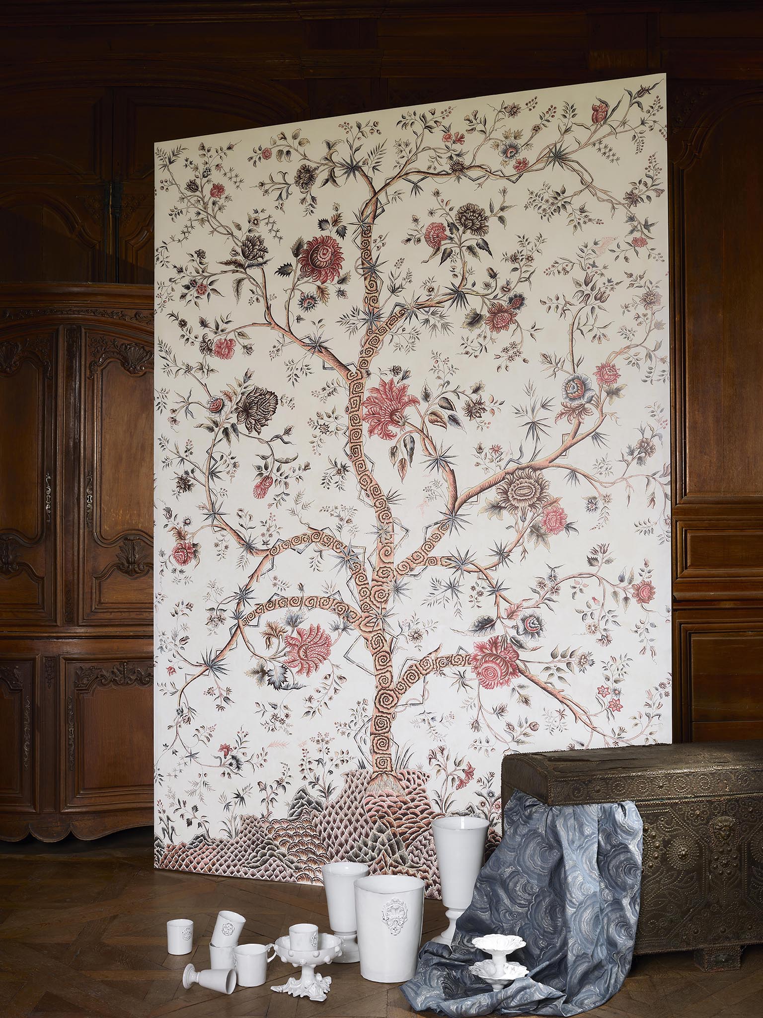 Unwrapped from their protective coverings, as if awakened from a long sleep, some of the archival drawings are used here for the first time. Others, emblematic, free themselves from their original coloring or technique and reinvent themselves in a new way. Treasures of beauty, the collection reads like pages of history recalling the spirit of the time; a penchant for exoticism and representations of fanciful locales, an invitation to the intimacy of the private apartments of Marie-Antoinette Queen of France, a particular inclination for the printed canvases of the Manufacture Royale d’Oberkampf, a place aboard the first flight in a hot air balloon... Conceived as a manifesto of the French art of living, this collection explores the notions of know-how, quality and taste. Stunning trees of life, sublime indiennes, glorious cashmeres, eternal flowers and rivers, tapestries that are more than contemporary, the classics are endlessly reinvented.