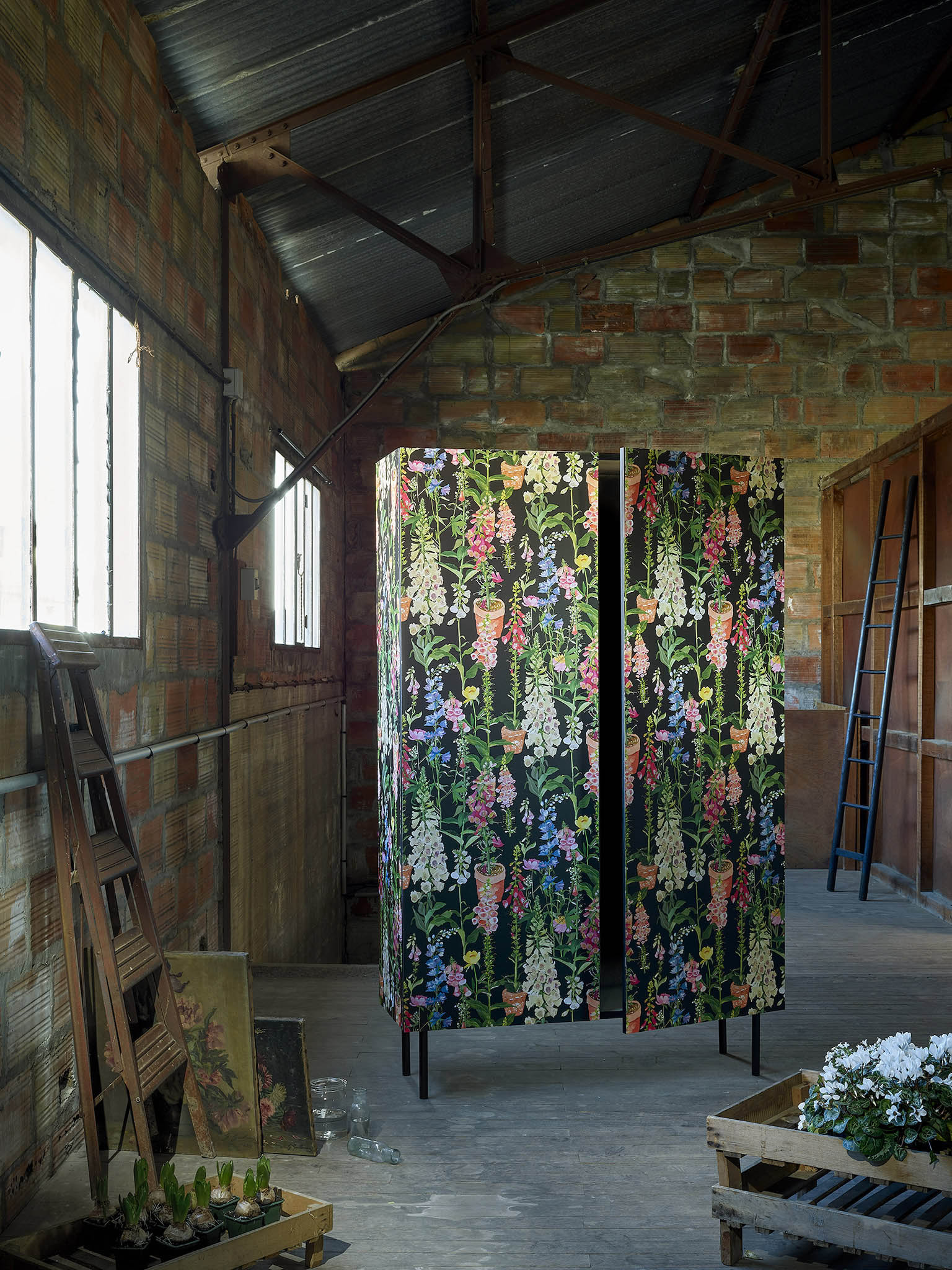 A true bias, the collection flirts with the identity of the 80's and the sweetness of a lunch in the sun. The traditional technique gives life and sparkle to the flower petals. Large width digital prints on matte, glossy or pearly nonwovens underline the opulence of the patterns and the handcrafted supports bring a natural touch.
