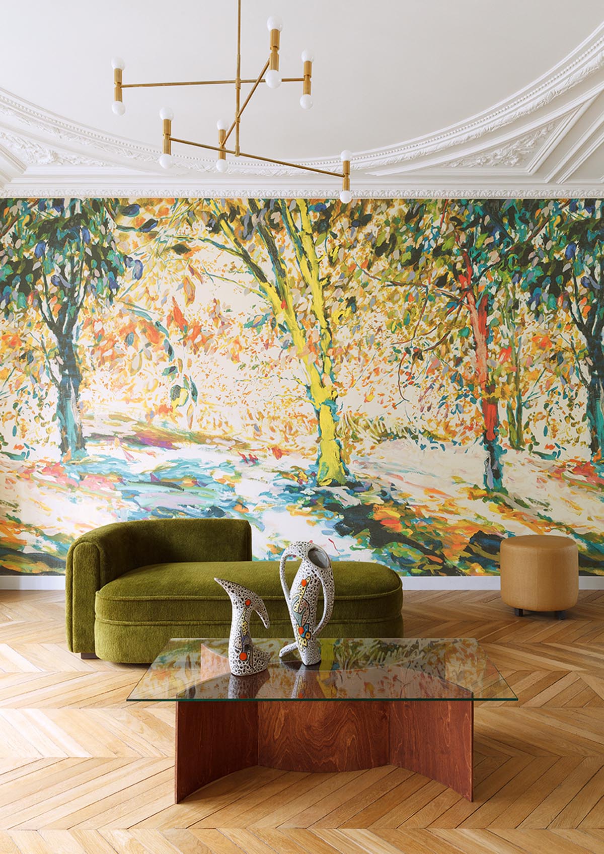 Tropical vegetation, Mediterranean seashores, mountain peaks and South American shores come to life and call for contemplation. The panoramic format also allows us to highlight the details of old documents such as a tapestry stitch, a street on a map of Paris or even the faded effects of a watercolor. Past and present dialogue in this collection where contemporary canvases with brushed brushstrokes are printed on the wall, in a magical way, in XXL. Whichever motif is represented, it is always a question of sublimating it through traditional or innovative know-how, the play of light with golden accents or with white varnish or wih the selection of matte, pearly, fibrous, glazed, non-woven or embossed vinyl supports.