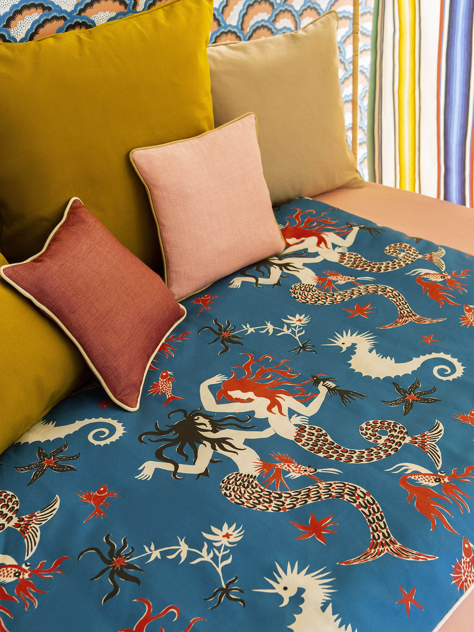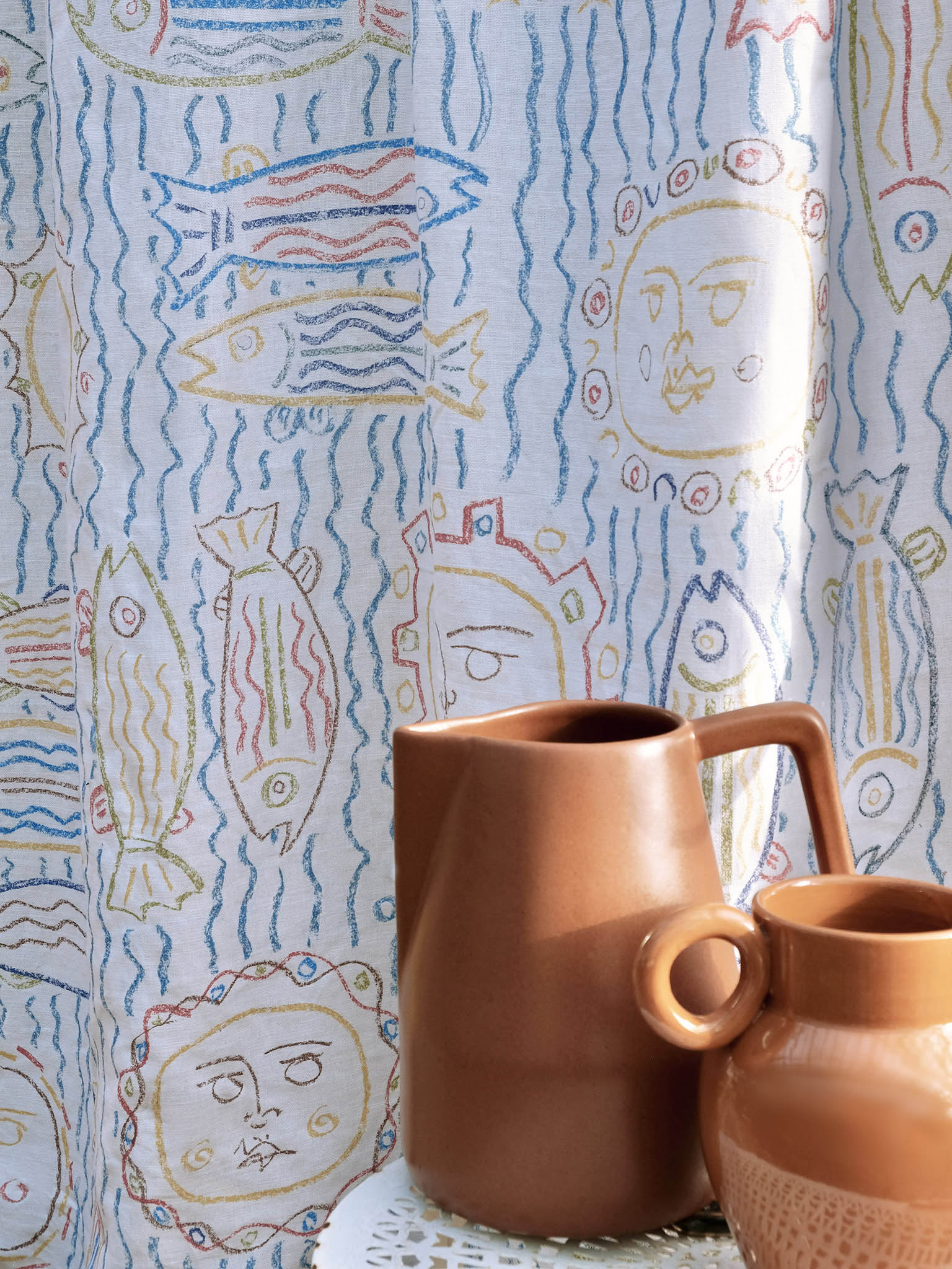 JOIE DE VIVRE mixes creations from the 50's, contemporary creations as well as patterns borrowed from popular textile traditions or shapes from the region's ceramics workshops. It draws and revisits the contours of a luminous landscape between sea and land, transporting us into a cheerful universe, from the Mediterranean to the hinterland of Provence. The name of the collection recalls the works of Picasso and Matisse and evokes the gentle way of life of the French Riviera.
