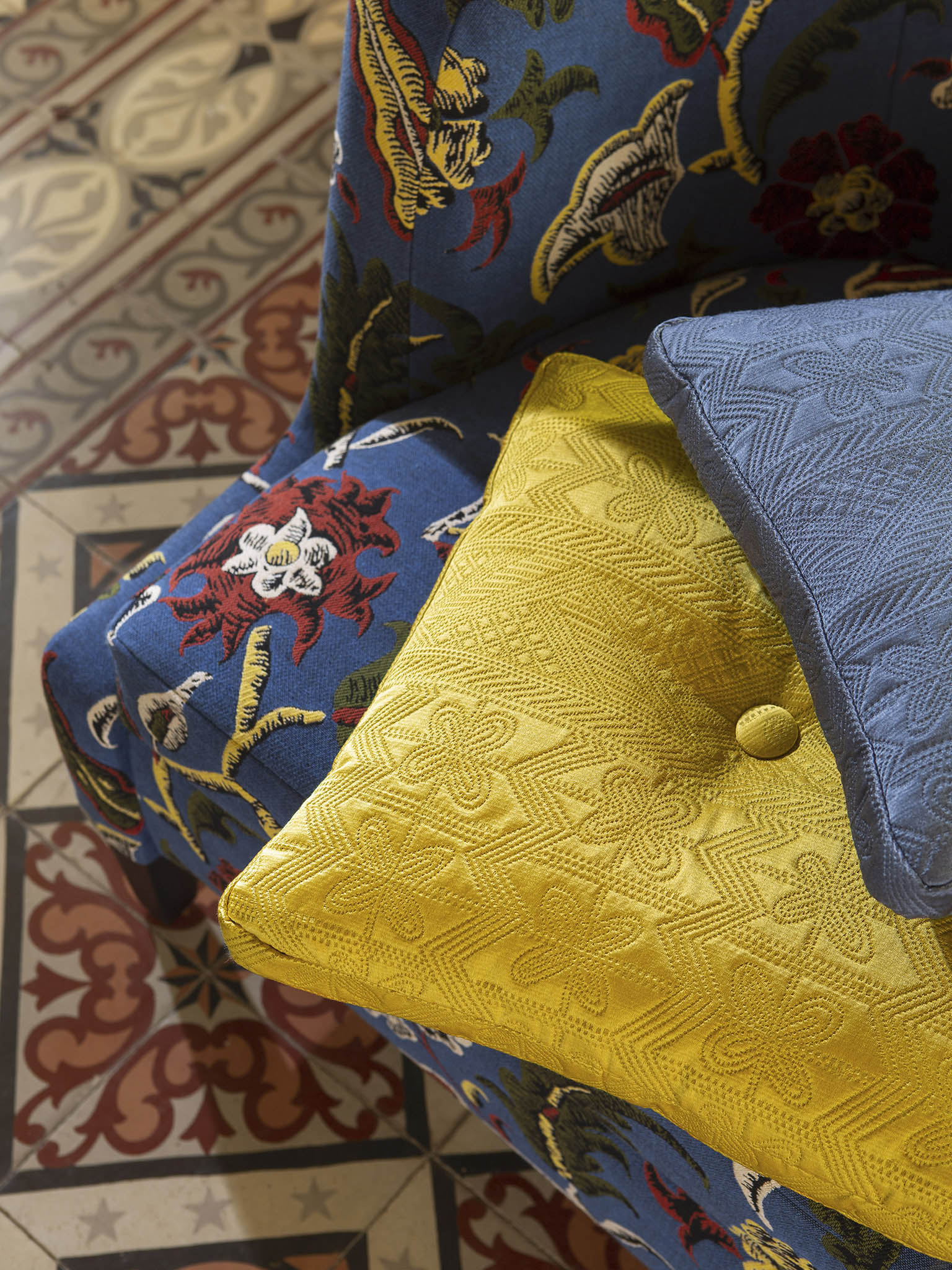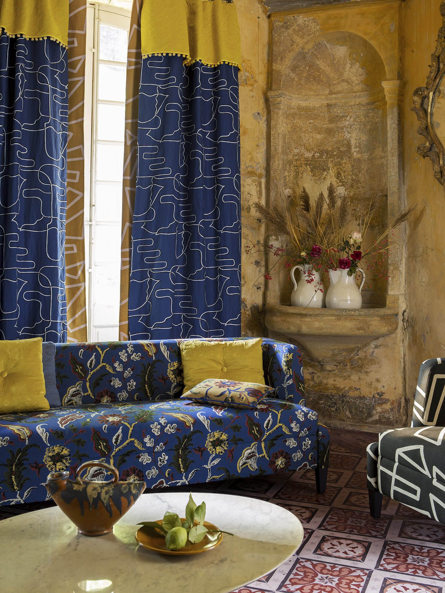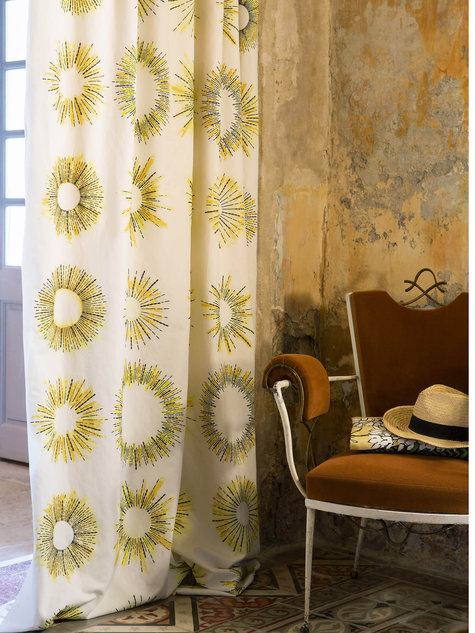 The ETERNEL ETE wallpapers collection and the SOLEIL D’ETE rugs and carpets complement the textiles like a hymn to the beauty of color and the arts.