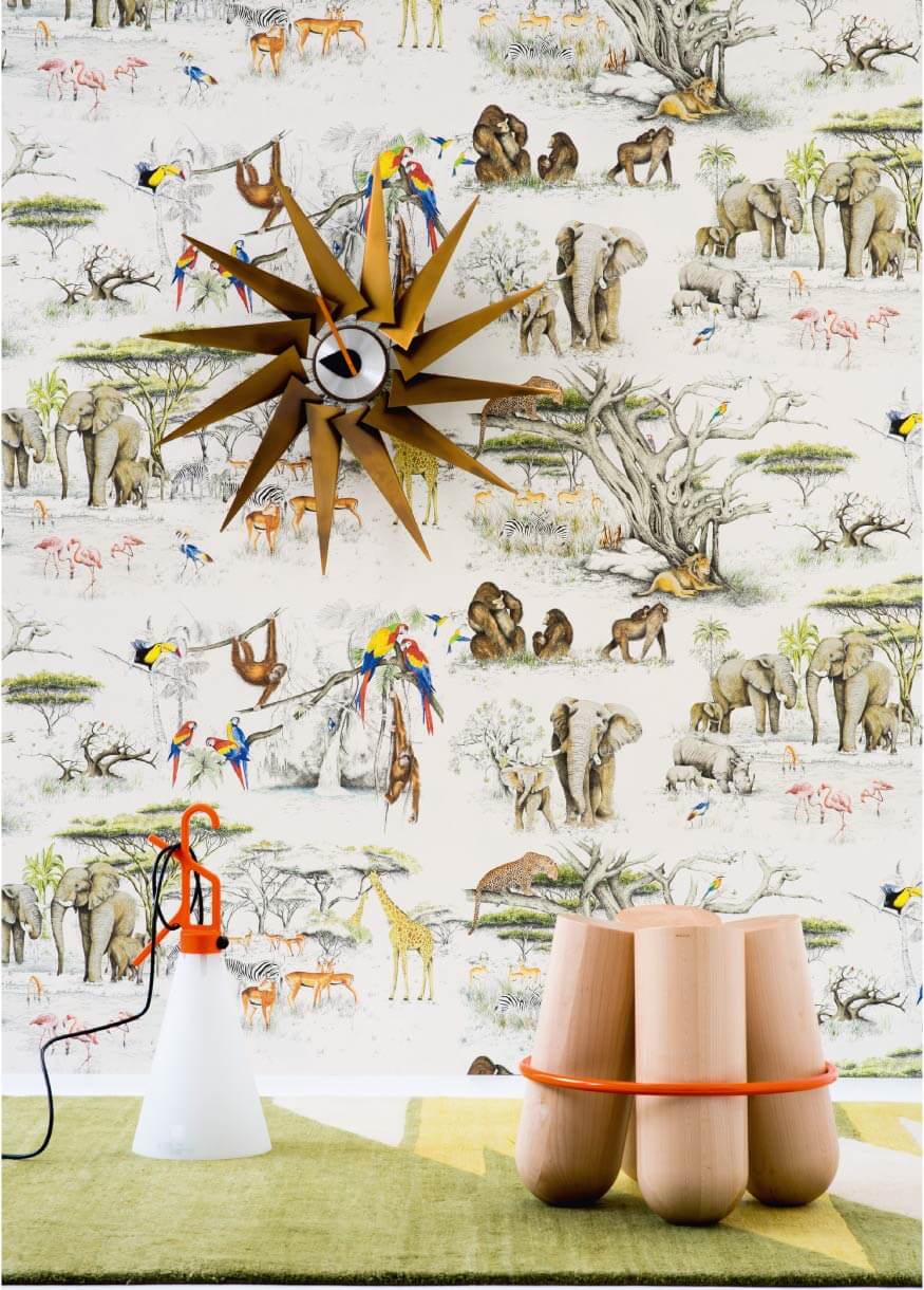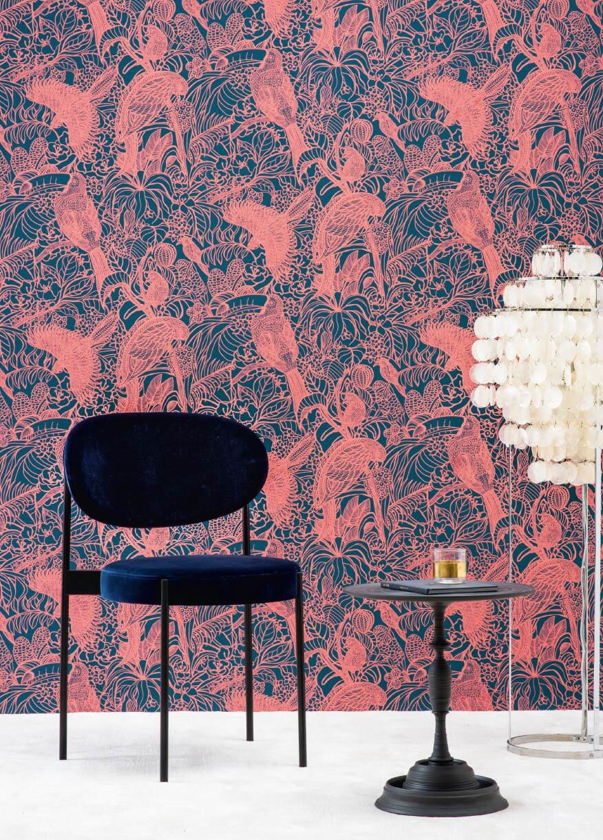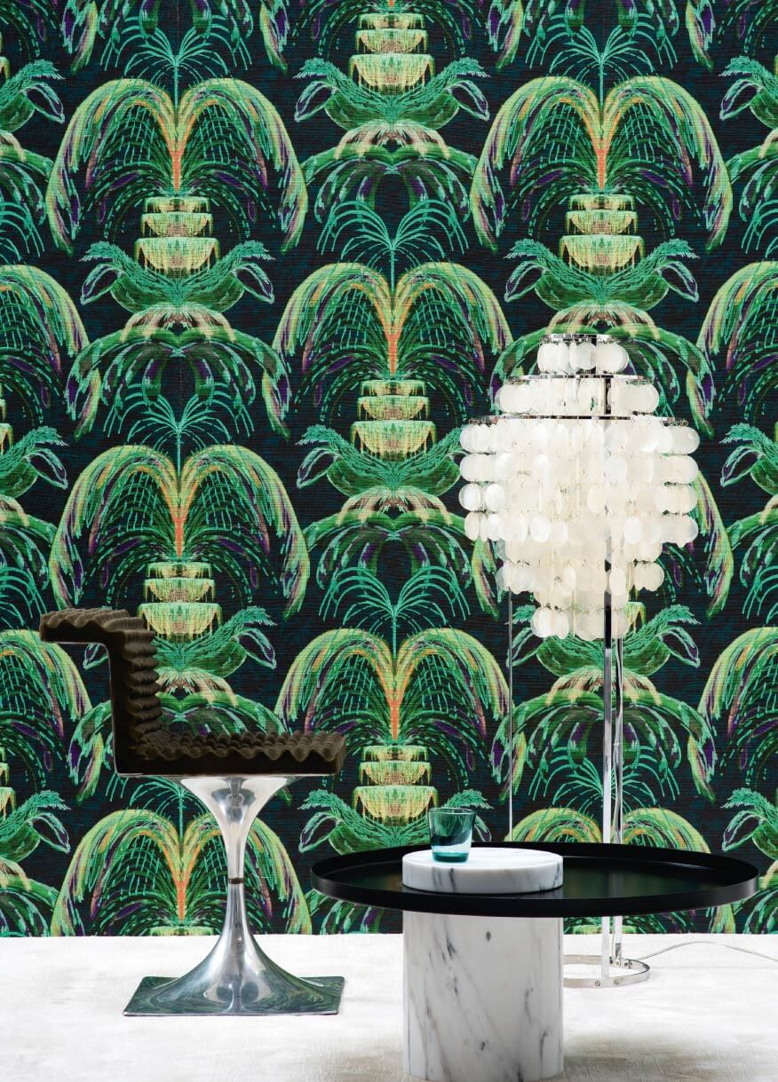 Known and recognized for bold, extraordinary prints inspired by travel to far-away places, Pierre Frey tends to place these motifs on walls.