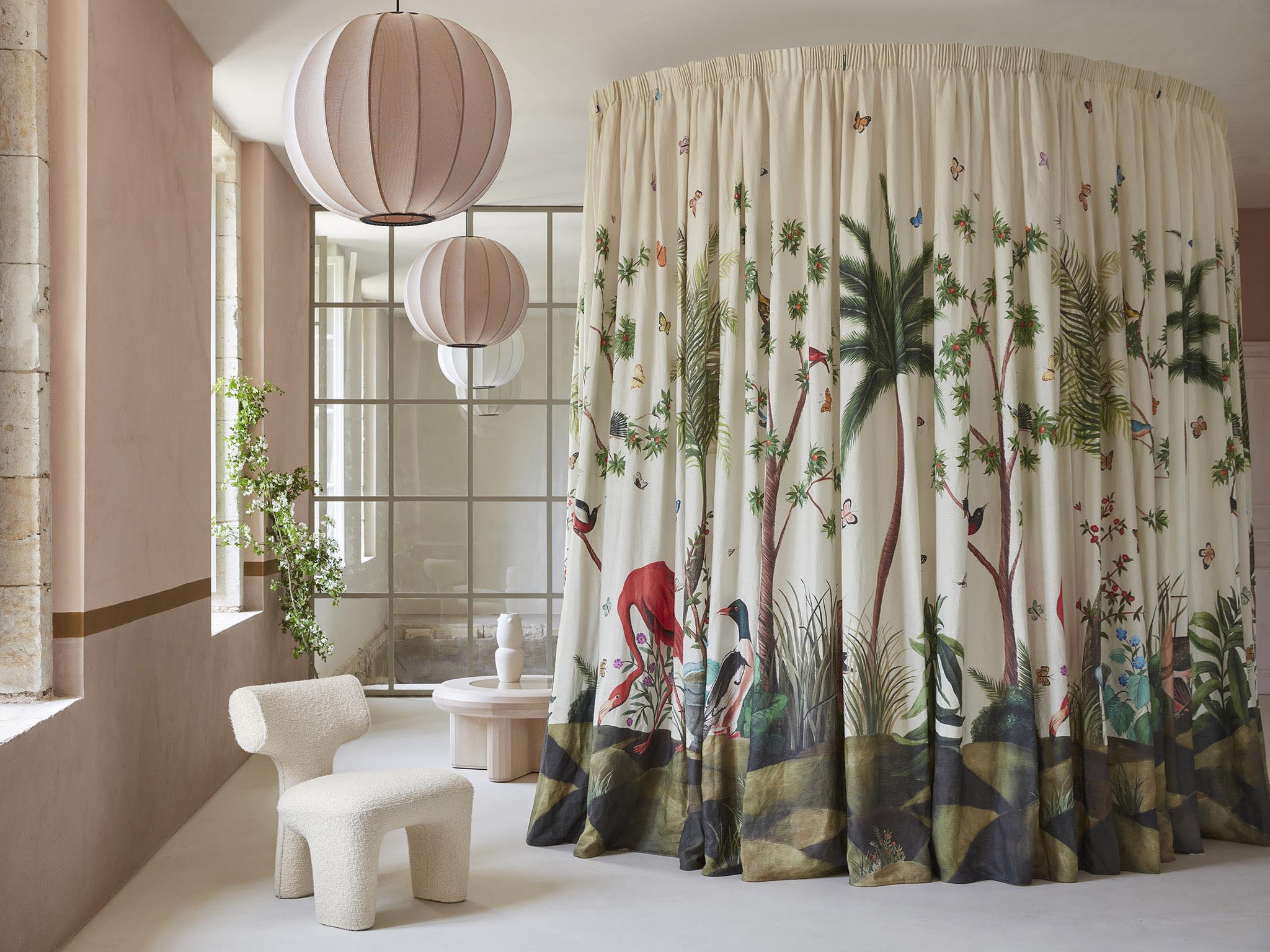 Deployed in panels to be hung or draped, the printed creations on sublime linen or cotton canvases continue to invite travel or daydreaming, as well as to amaze by their audacity and eclecticism.