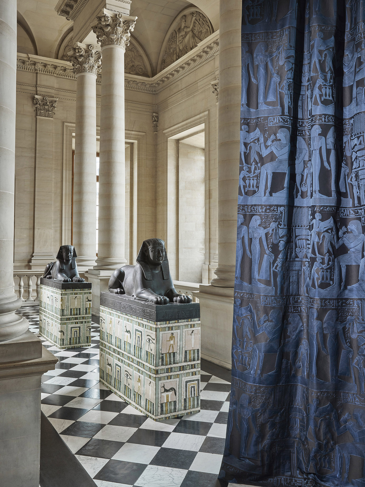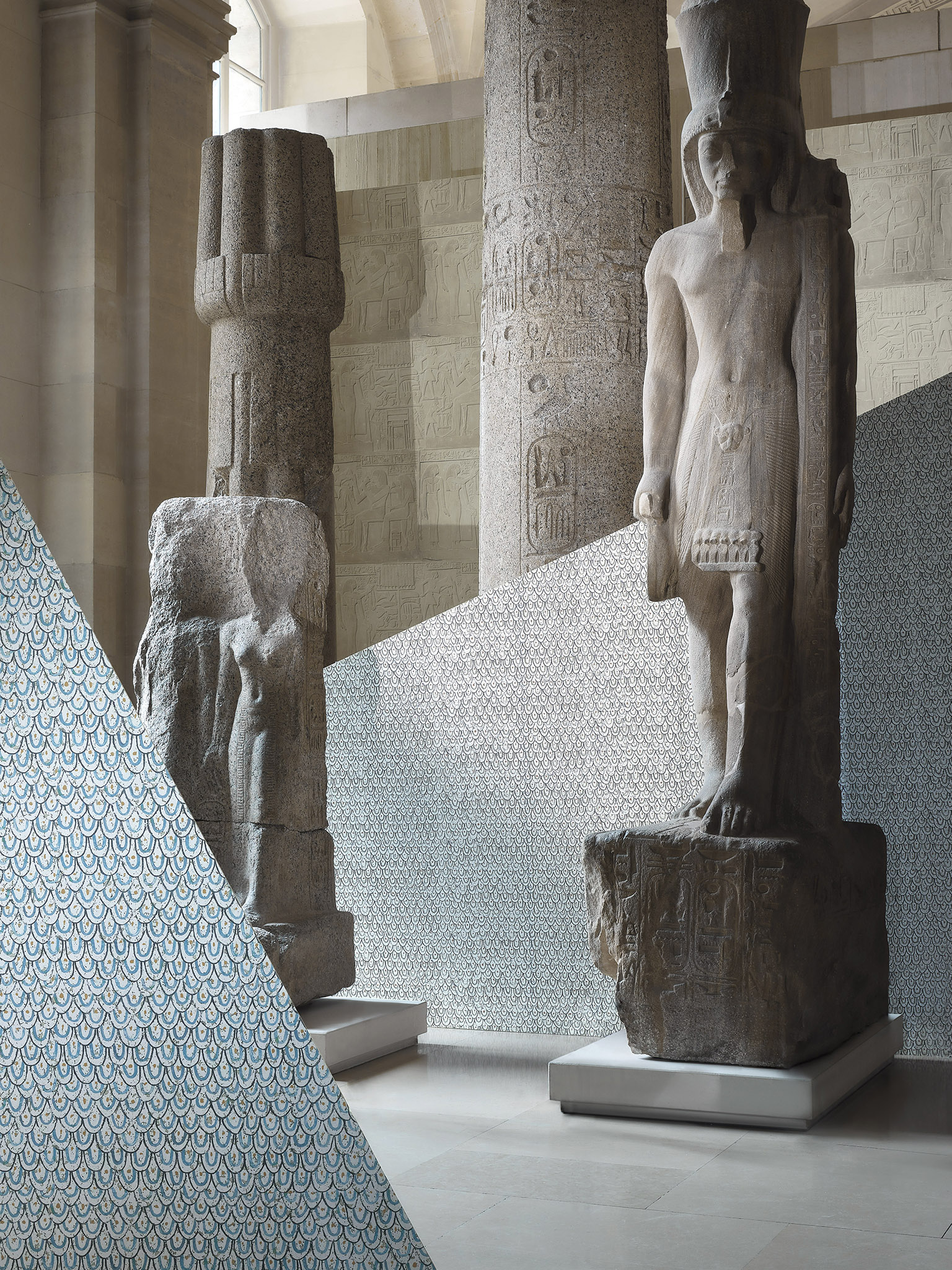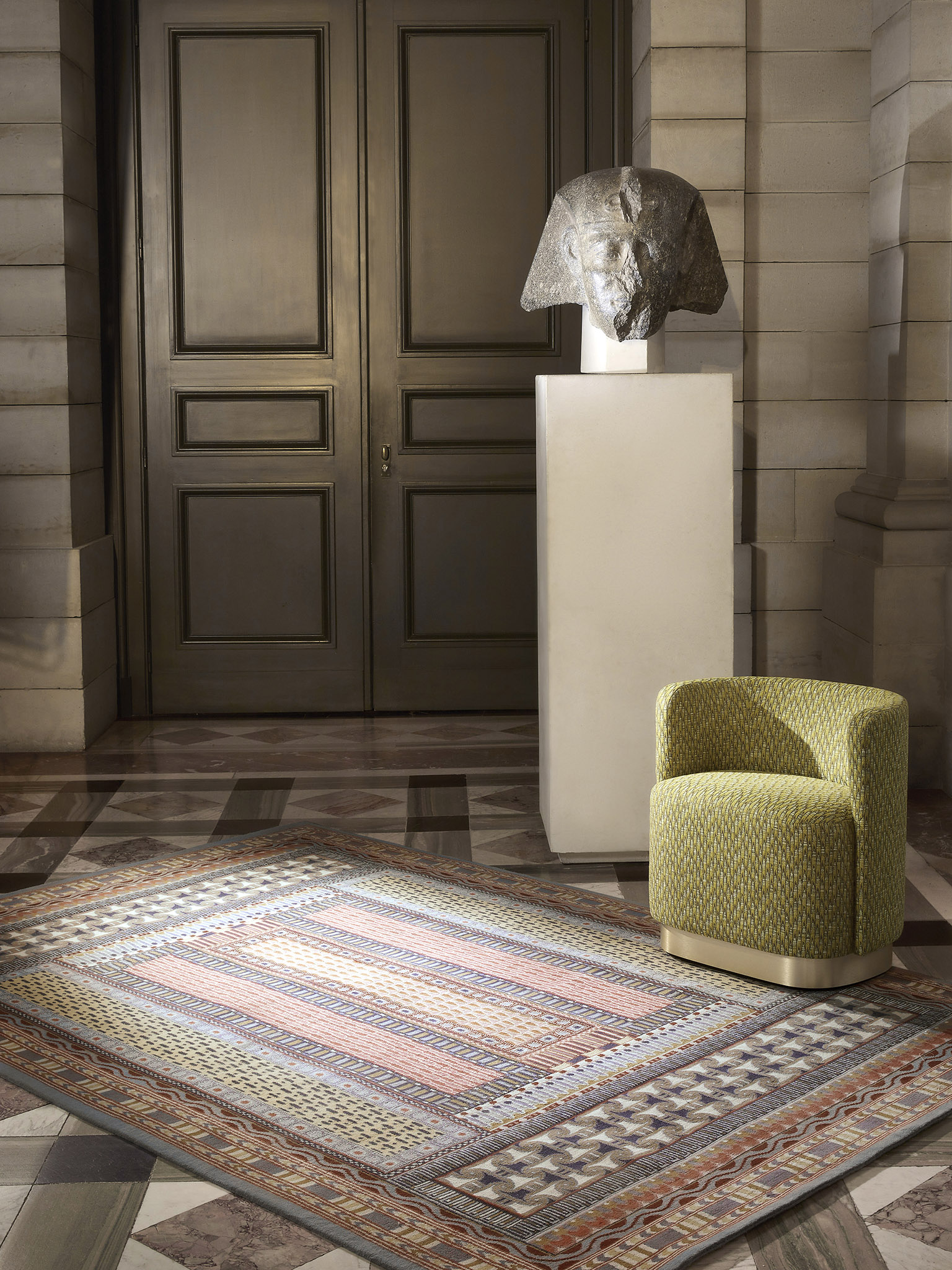 The collections of textiles, wallpapers and rugs " Merveilles d'Egypte " resonate with the sacred art, materialized by the pyramids and their decorations with a form of celebration of life on the Nile. They pay tribute to an Egyptomania born at the end of the 18th century with the Egyptian campaign, whose civilization, power, mystery and refinement have never ceased to fascinate scientists, historians and artists.