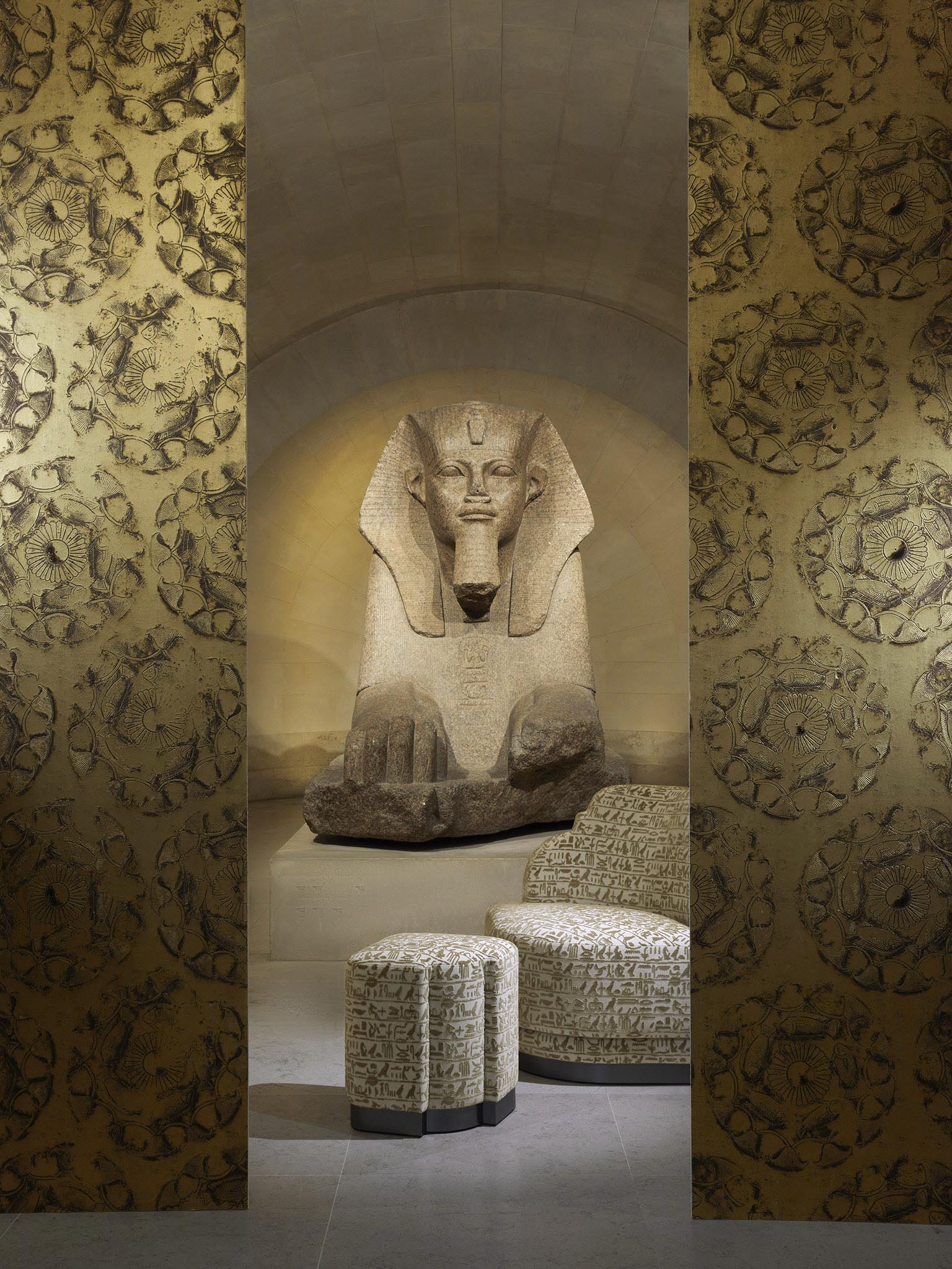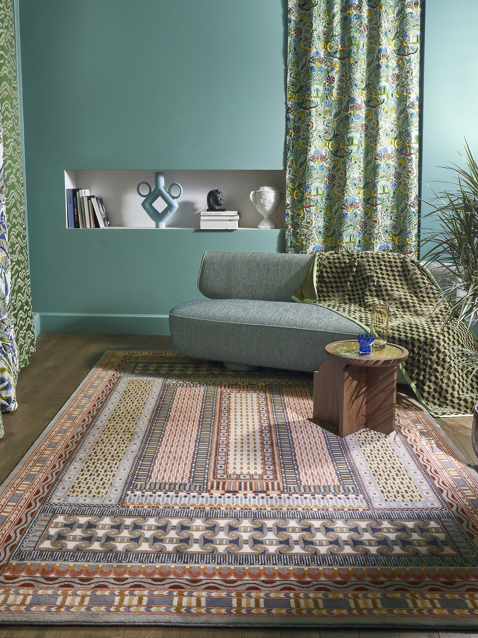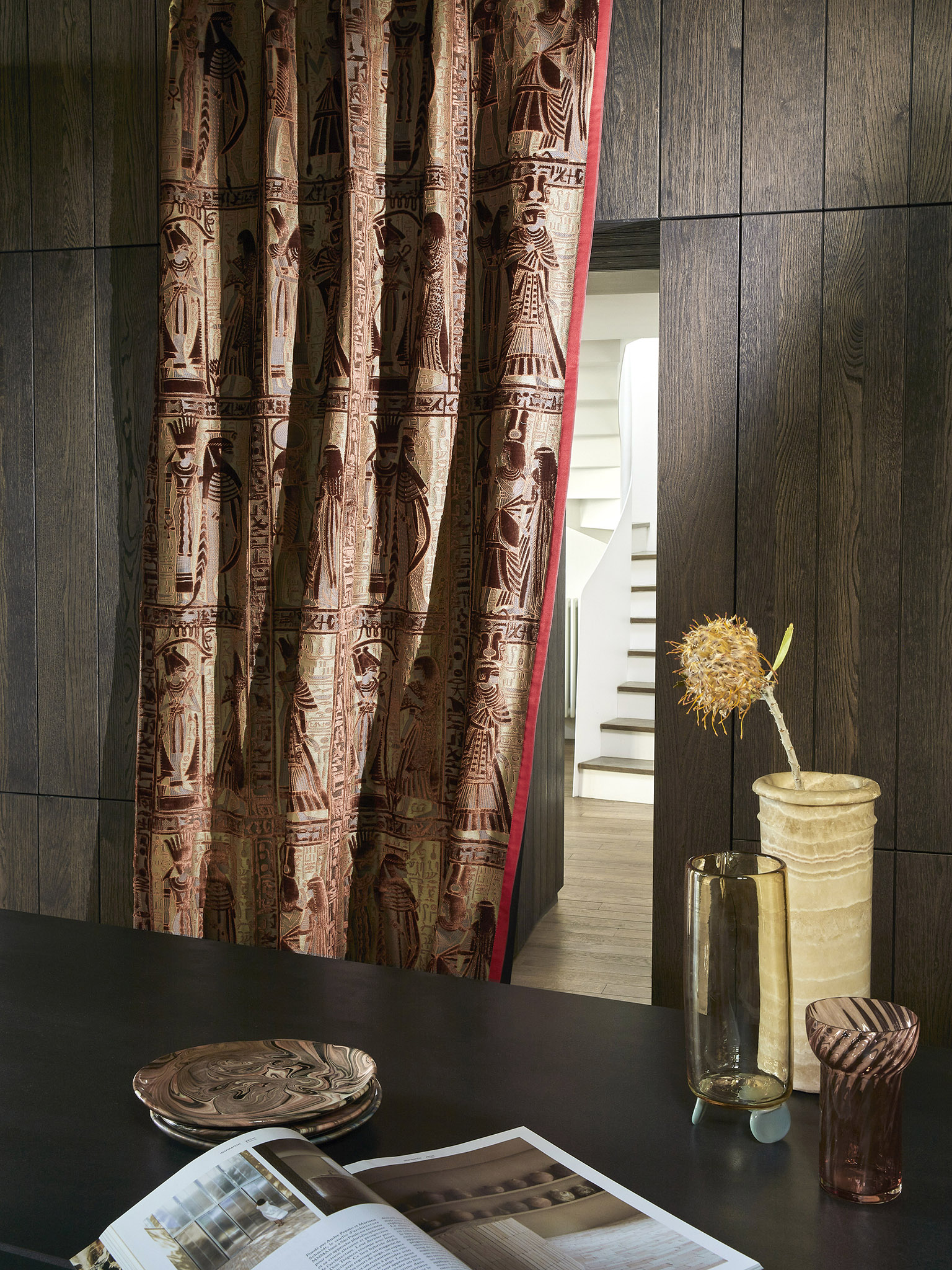 The collections of textiles, wallpapers and rugs " Merveilles d'Egypte " resonate with the sacred art, materialized by the pyramids and their decorations with a form of celebration of life on the Nile. They pay tribute to an Egyptomania born at the end of the 18th century with the Egyptian campaign, whose civilization, power, mystery and refinement have never ceased to fascinate scientists, historians and artists.