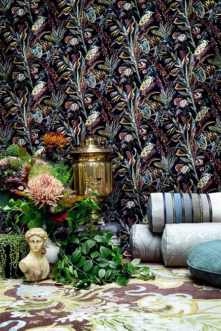 This predominantly linen and silk striped peking evokes the motifs of the crinolines and ribbons favoured by elegant ladies in the Second Empire period.