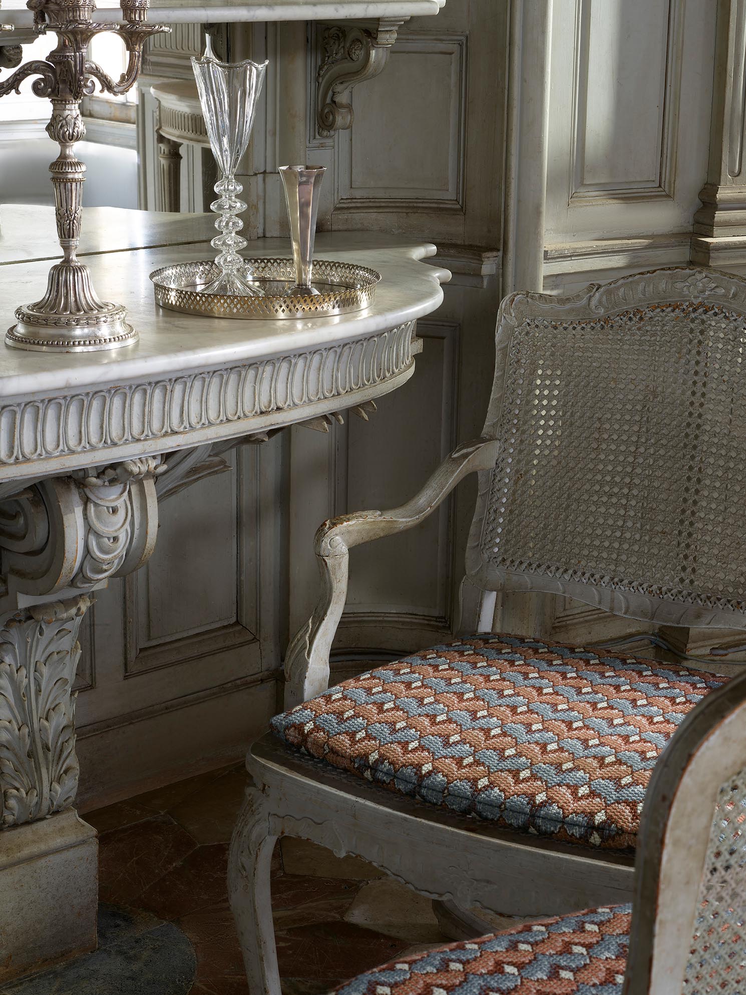 Elegant Hungarian stitch with a typical 17th century pattern and weave, TALMONT's dense colors and twisted threads make this a timeless and sophisticated fabric.