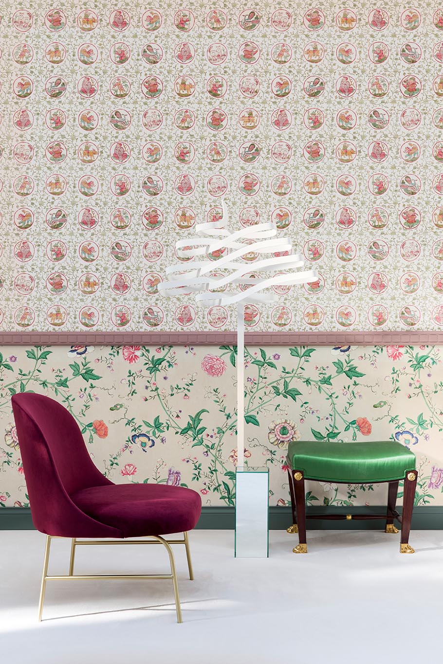 On the eve of its bicentennial, Braquenié bears witness to the timelessness of its heritage and celebrates the quintessence of French style, a subtle blend of foreign influences and national creations. Offering a rich dialogue between tradition embodied in unalterable elegance and assumed representations, the ANNIVERSAIRE 1823 – 2023 collection unfolds around authentic reproductions as well as reinterpretations inspired by illustrious documents, preserved in the House's archives department, or in the heritage collections of the Château de Versailles, the Musée des Arts Décoratifs in Paris or the Musée de la Toile de Jouy.