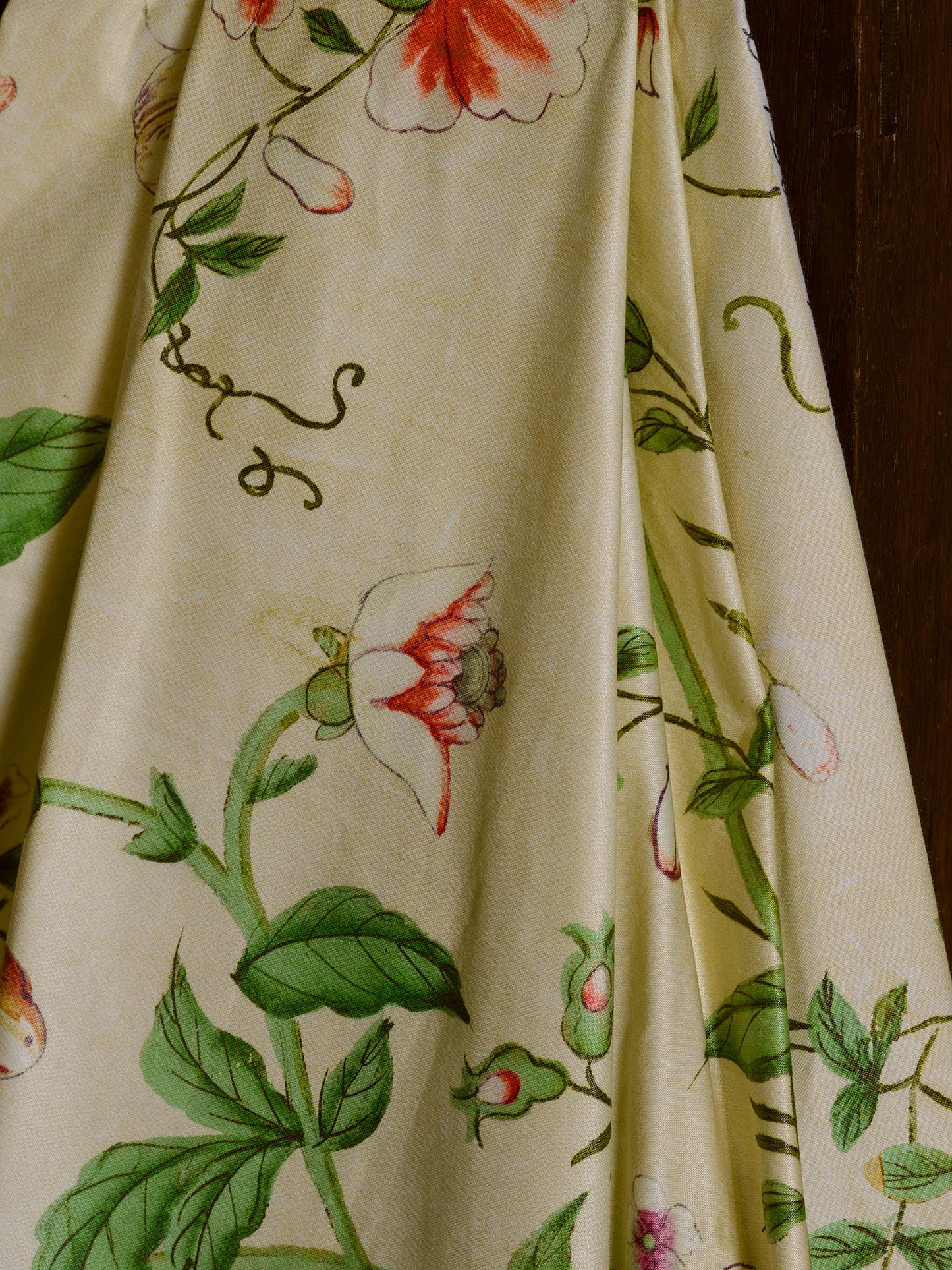 Reproduction of a screen covered with a canvas painted in China belonging to the famous American designer John Derian, this floral composition dating from the eighteenth century is printed on a cotton percale. The cracks and the patina of time are preserved to replicate the archive. Also available in matte print, and as wallpaper.