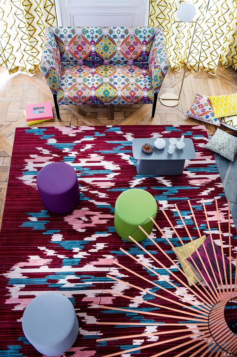 At Pierre Frey, the inspiration for a collection often originates from an encounter. In 2010, Patrick Frey and his team crossed the path of an individual who had explored South East Asia on foot. All along his travels, this passionate adventurer had collected textiles as an illustration of the ancestral artistry of often overlooked ethinicities. It is through this encounter that the team discovered the MIAO people, living in the Guizhou province of China, shielded by the moon mountains. The Maoming collection is an invitation to discover the mysterious power of the Miao art, based on the crafting of indigo and a diversity of colors. Geometric patterns and tie-dye effects in bright, shot silk colors evoke the talent and know-how of the Miao women.