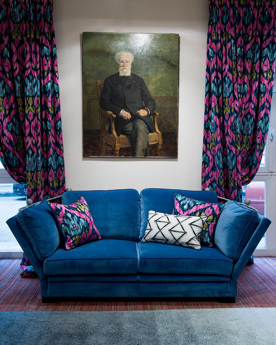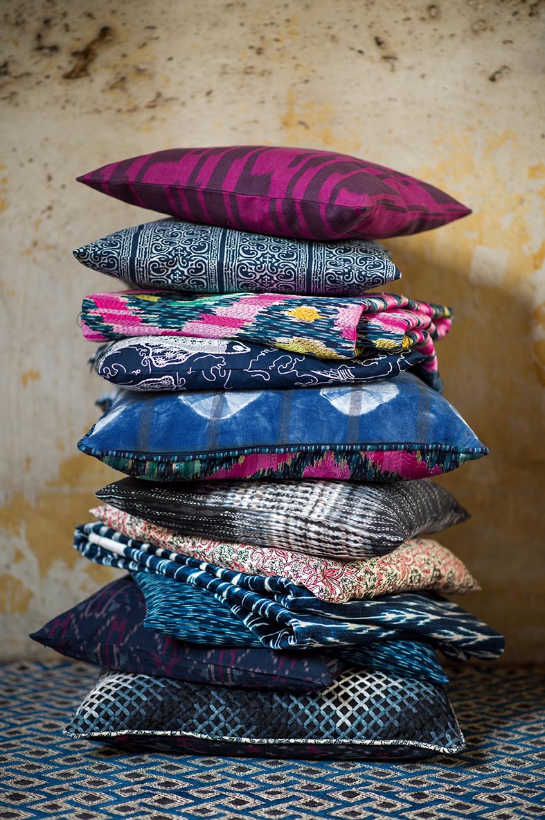 At Pierre Frey, the inspiration for a collection often originates from an encounter. In 2010, Patrick Frey and his team crossed the path of an individual who had explored South East Asia on foot. All along his travels, this passionate adventurer had collected textiles as an illustration of the ancestral artistry of often overlooked ethinicities. It is through this encounter that the team discovered the MIAO people, living in the Guizhou province of China, shielded by the moon mountains. The Maoming collection is an invitation to discover the mysterious power of the Miao art, based on the crafting of indigo and a diversity of colors. Geometric patterns and tie-dye effects in bright, shot silk colors evoke the talent and know-how of the Miao women.