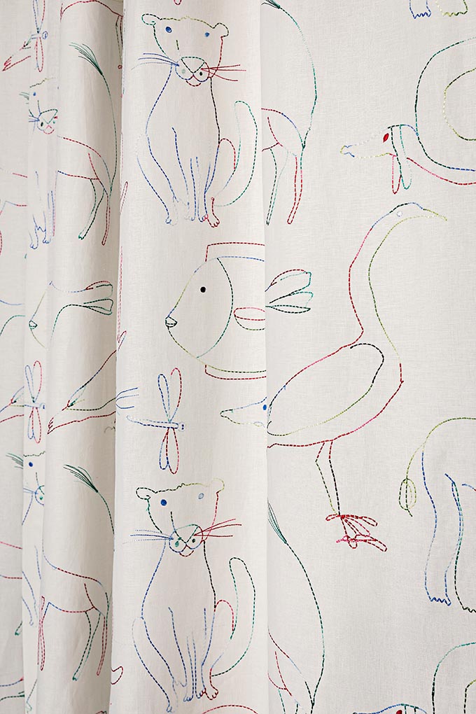 Funny animals that, like chameleons with multiple colors, seem to have a hard time blending into a monochrome decor! Soft and joyful embroidery in multicolored gradient thread on linen. Coordinated with wallpaper FP835 BESTIAIRE ENCHANTE. 10% of the profits are donated to the Fondation de France, to support the project Tous unis contre le virus (All united against the virus) via an action carried out to prevent school dropouts.