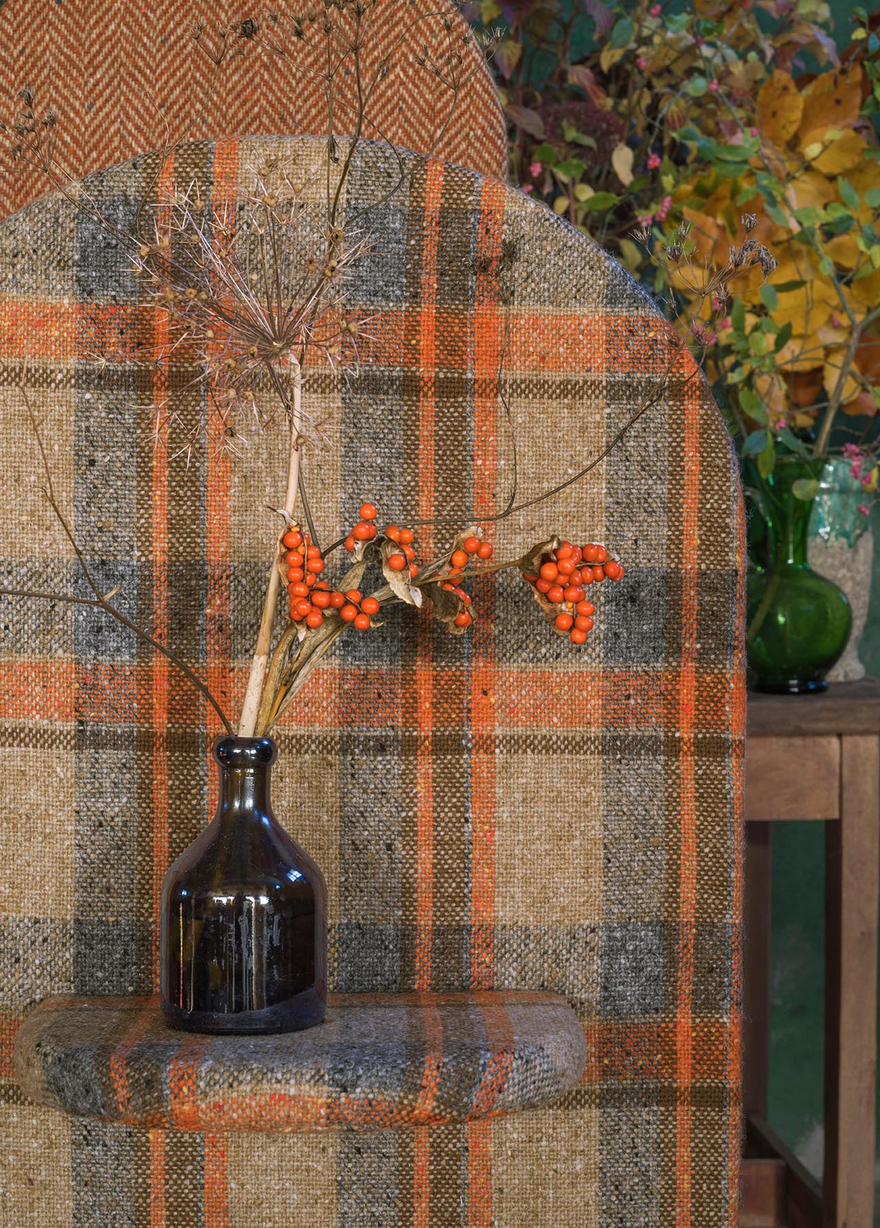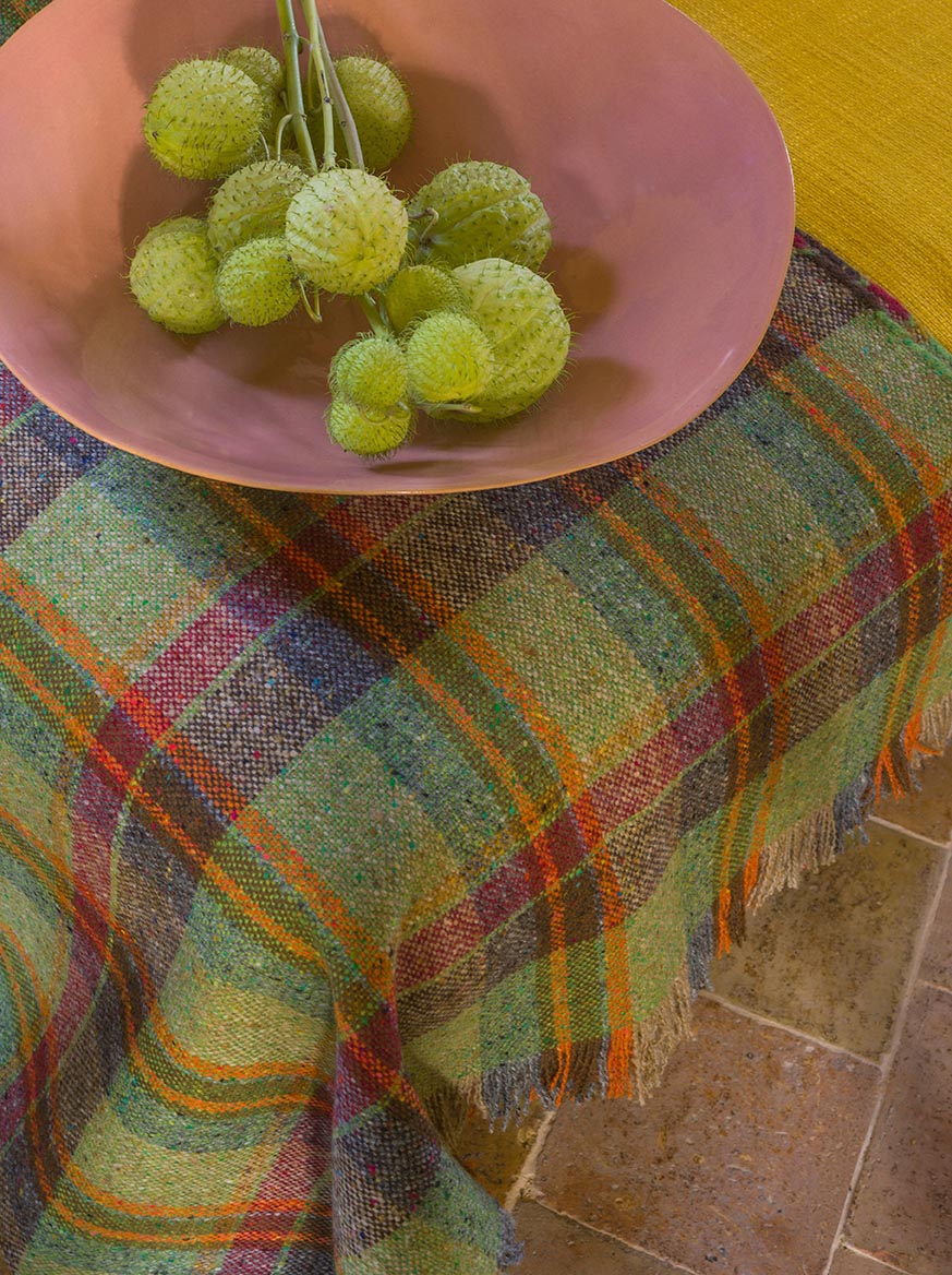 Proudly Irish, this pure new wool tweed is traditionally woven in Donegal and reveals a wide tartan punctuated by fine flecks of bright colors. Resulting from an ancestral technique, this unique woolen fabric reflects an incredible work of yarn spinning, as well as an intricate arrangement of warp and weft threads and an exclusive color range by Sequana.