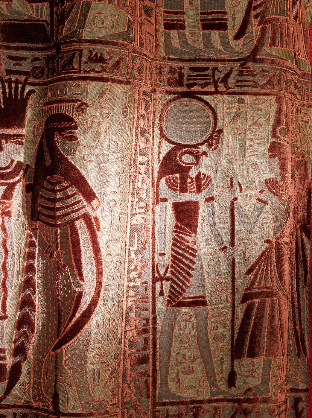 The collections of textiles, wallpapers and rugs " Merveilles d'Egypte " resonate with the sacred art, materialized by the pyramids and their decorations with a form of celebration of life on the Nile. They pay tribute to an Egyptomania born at the end of the 18th century with the Egyptian campaign, whose civilization, power, mystery and refinement have never ceased to fascinate scientists, historians and artists.