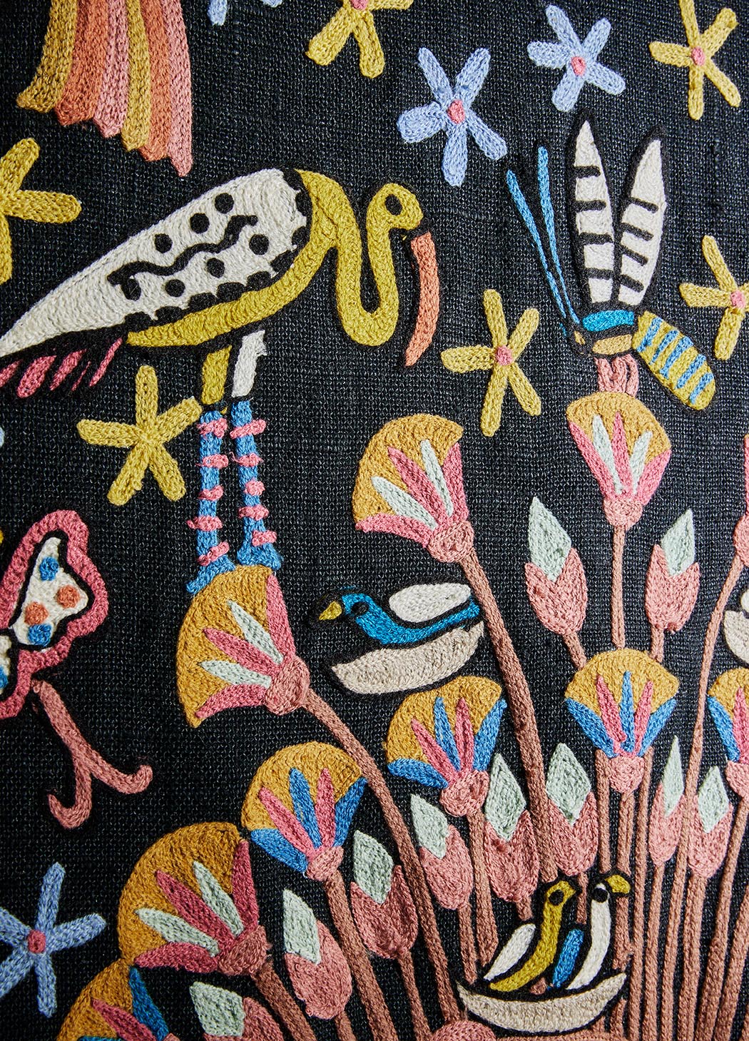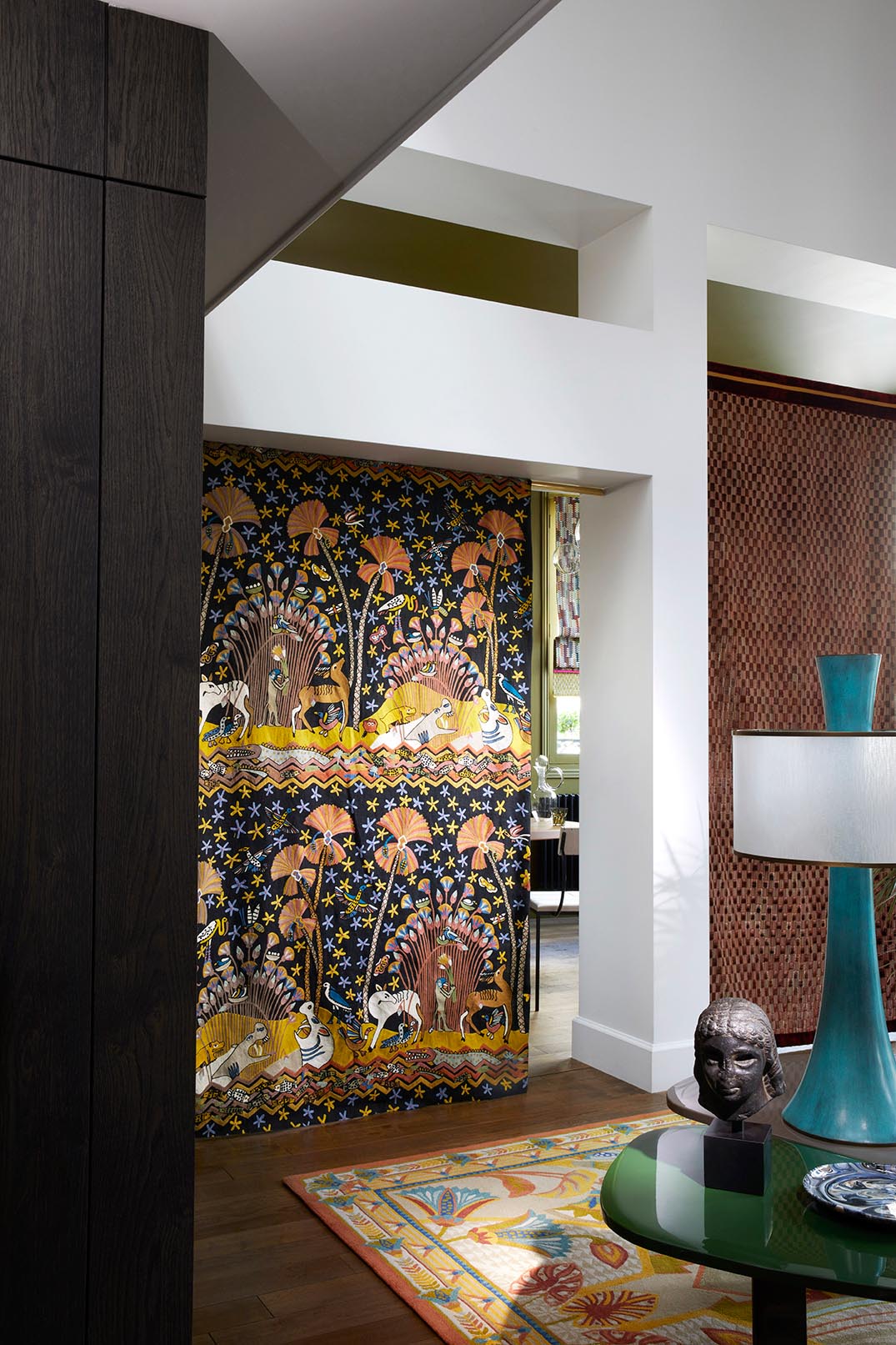 Dividing his time between Cairo and Paris and an unconditional lover of Egypt, Louis Barthelemy drew on the symbols of ancient Egypt: pairs of animals, praise for the nativity, a hippopotamus erected as a divinity, lotus flowers with magical powers, zigzag patterns representing the ancient Nile, ending in a circle evoking infinity, stars covering the ceilings of the temples... All these elements are available in wallpapers and panoramic designs whose paper frame and iridescent finish evoke a contemporary retranscription of a papyrus. In another version, they are also majestically embroidered with wool on rustic linen, a plant fibre sacred in Egypt symbolising purity and the goddess Isis. The artist, after a phase of research and conceptualisation, first draws with a pencil to create the outlines of what will become a wallpaper or a fabric. He finalizes the drawing on the computer in order to adapt it to the current means of production and to colour it according to the emotion he wishes to arouse. Through the scarves that Louis Barthelemy designe d for Dior, the tapestries or collection of shoes that he created for Louboutin and this almost pop fresco that he imagined for Pierre Frey, the duality dear to the artist between East and West, the chaos of Cairo and the institutional order of Paris, the work of the hand and that of the computer, contemporary creation and references to antiquity... Louis Barthélémy's work fits in perfectly with Pierre Frey's Merveilles d'Egypte collection in collaboration with the Louvre Museum and conveys with finesse a continuous reading of a cultural and universal heritage.