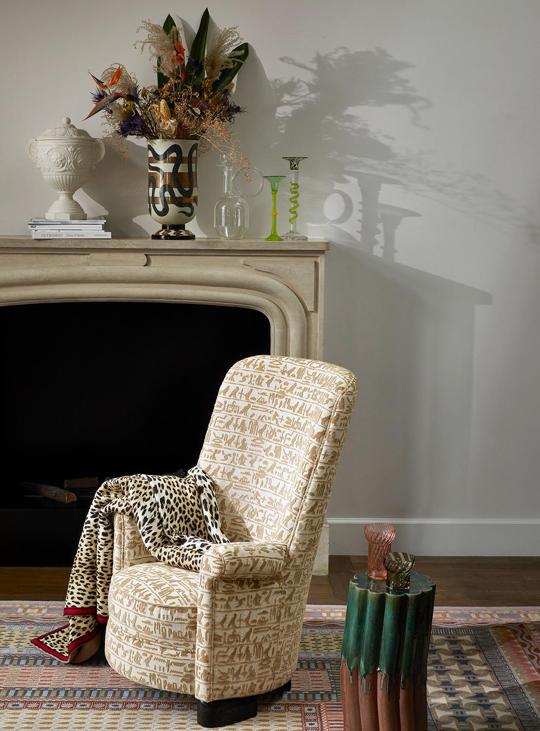 Working in partnership with the Louvre to celebrate, in particular, the bicentenary of the discovery of hieroglyphs by Champollion in 1822, the Maison Pierre Frey new collection displays a wide range of motifs and drawings, between faithful reproductions and free inspirations, with a respectful view of the preserved works but also a contemporary and graphic reading.