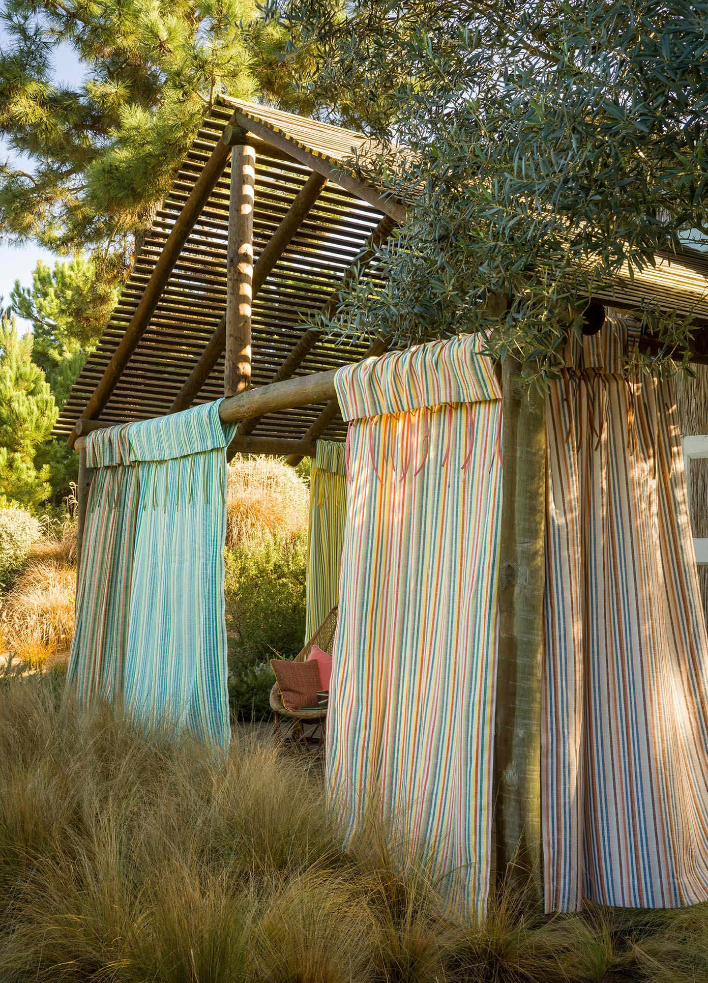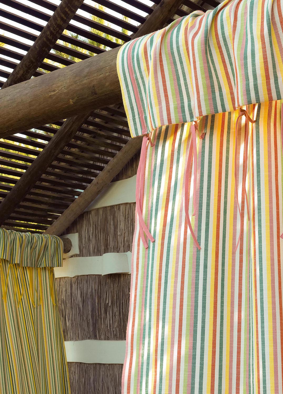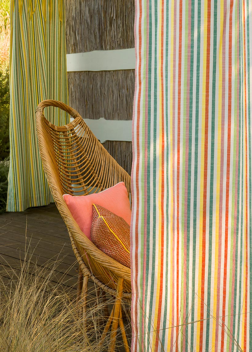 PAPEETE is an outdoor performance fabric, a vertical linen stripe in a range of acidic colors. Between simplicity and refinement, its weaving illustrates all the know-how of Pierre Frey's workshops in northern France.