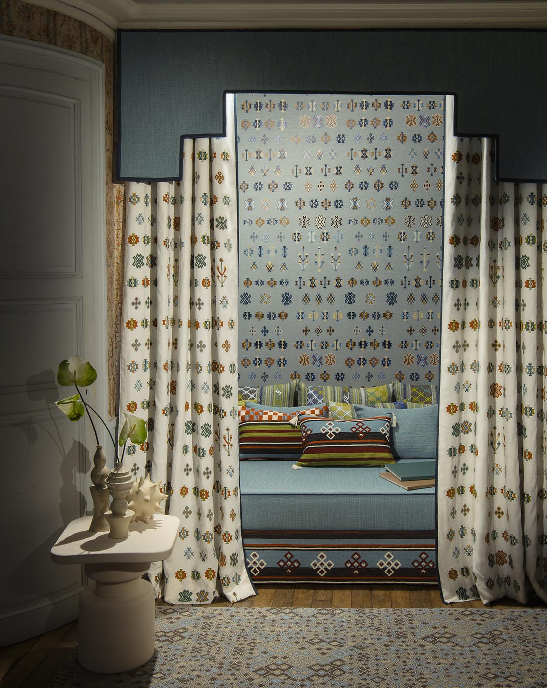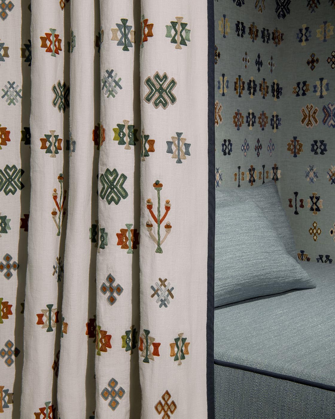 Authentic and timeless, this delicate hand-embroidery in jute and wool thread is a precise reinterpretation of one of the Maison's archives.