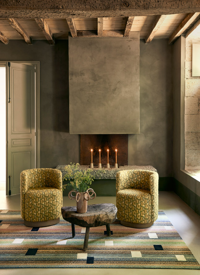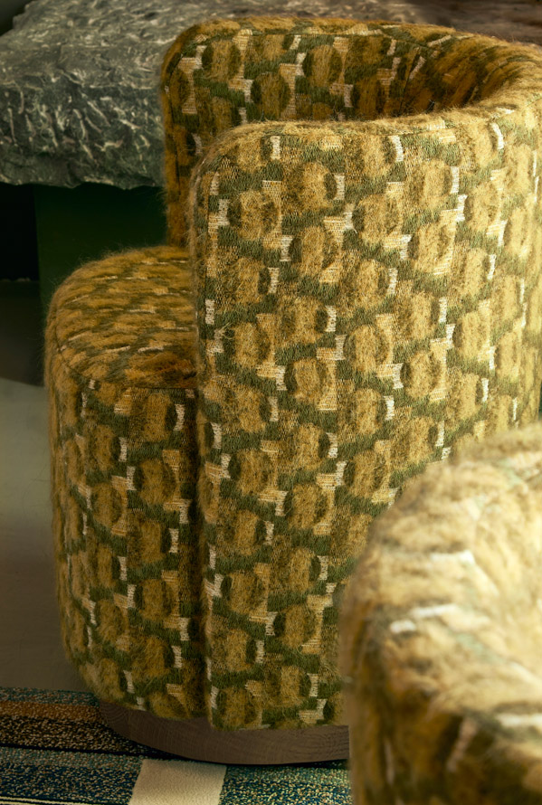 With its charming pattern of interlaced circles and soft, woolly hand, this fabric evokes Mys, the Swedish art of well-being. Woven in Pierre Frey's EPV-certified workshops in the north of France, it is particularly well suited to seating.