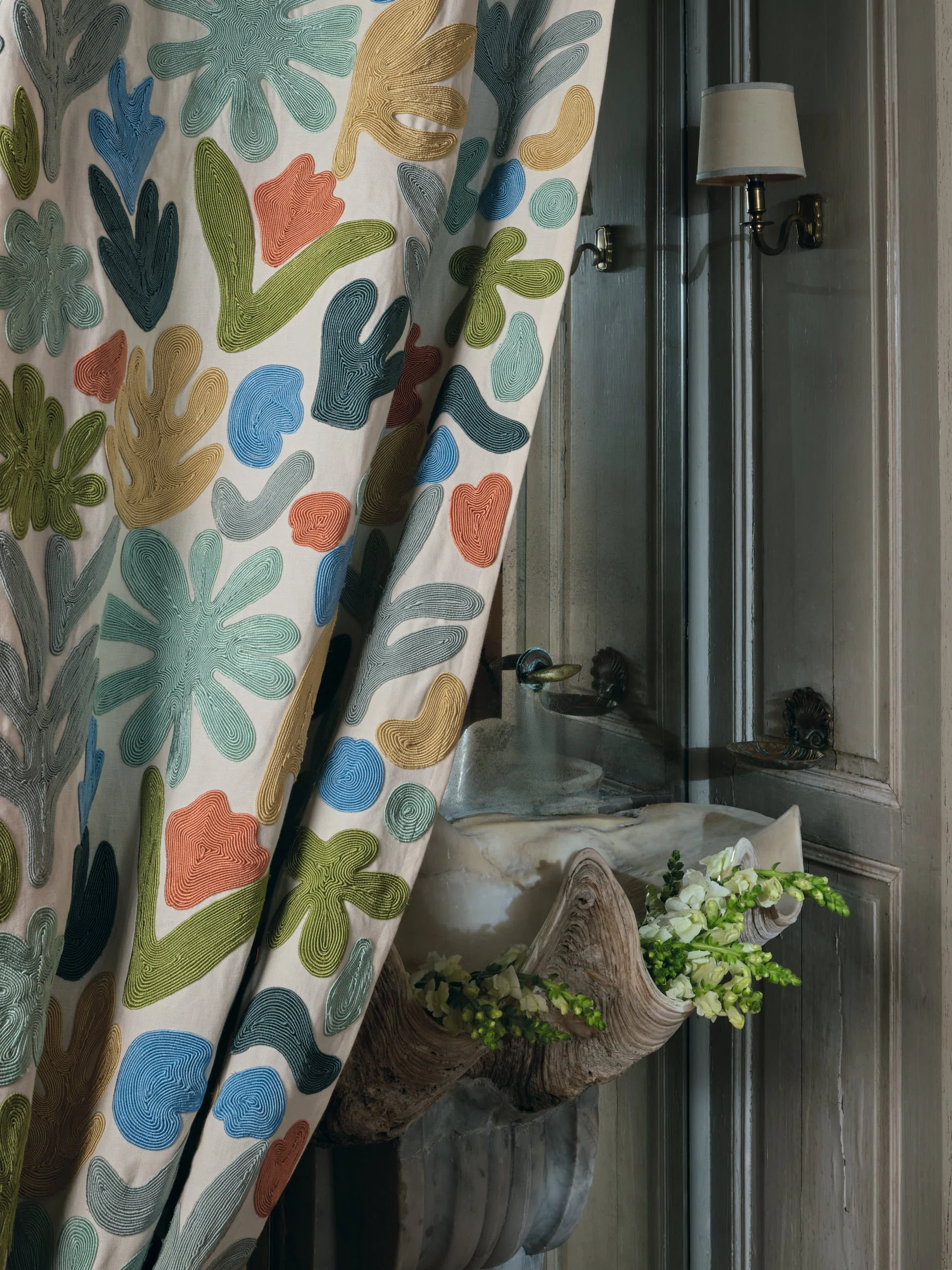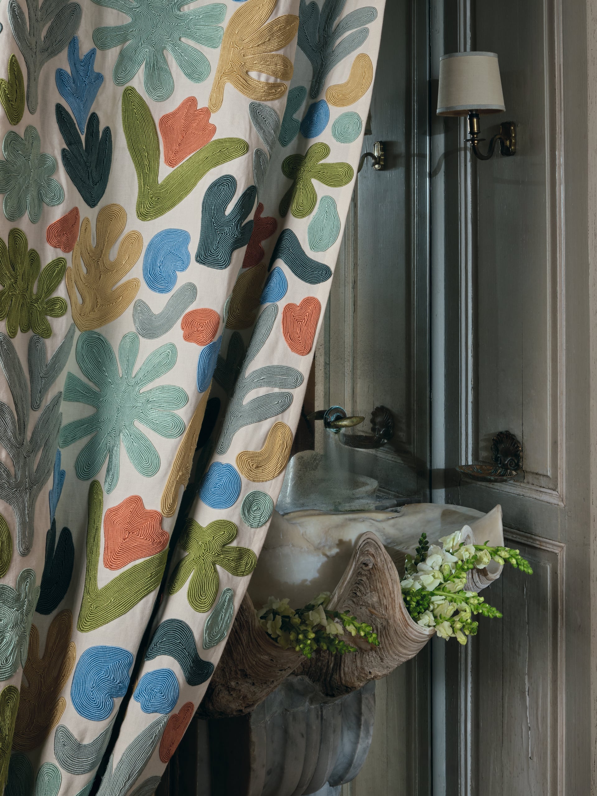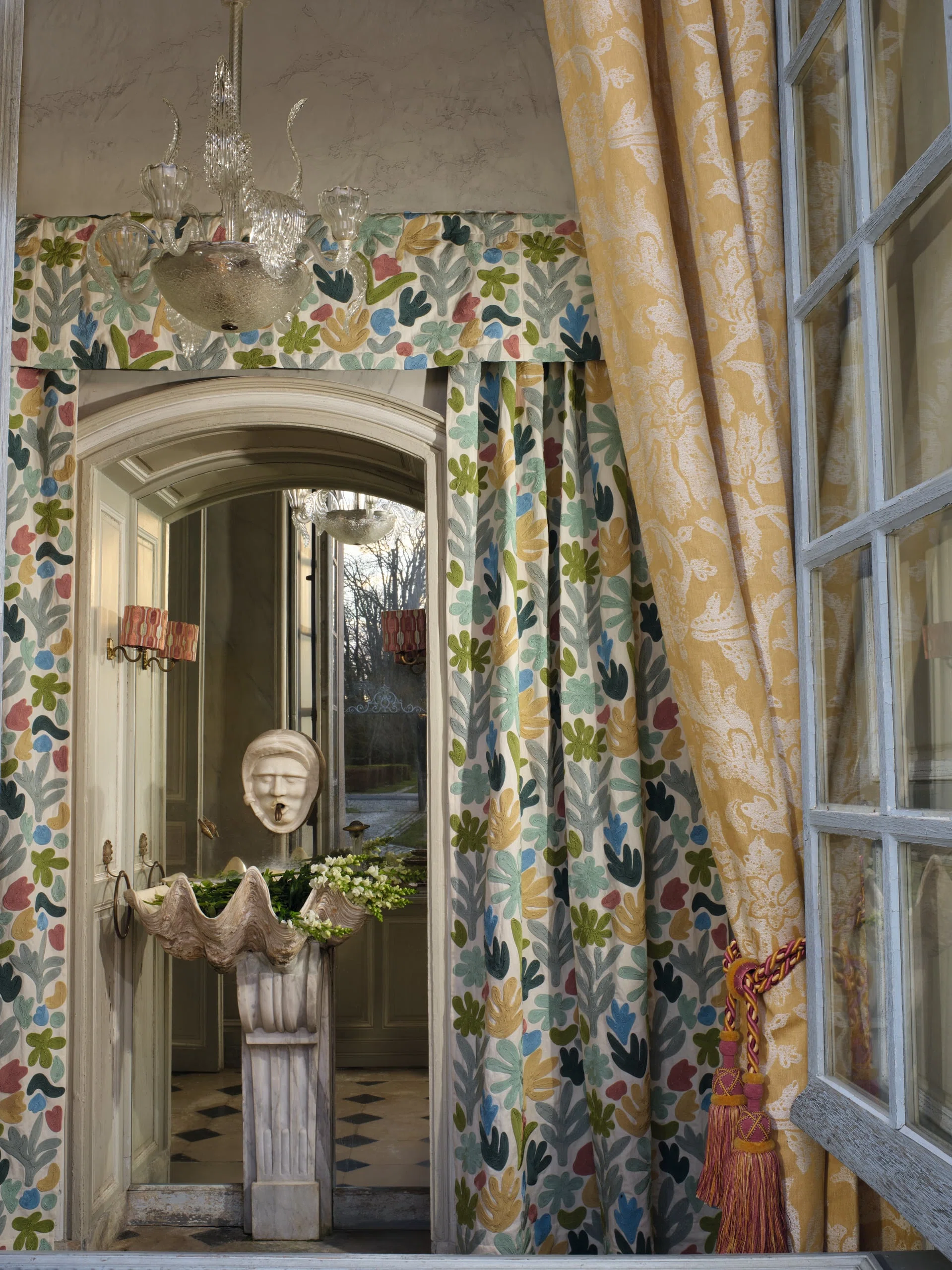 With its signature eclecticism, Maison Pierre Frey revisits the theme of French gardens with both elegance and audacity. The designs evoke lush vegetation while revealing the subtle geometry of formal garden layouts. Inspired by contemporary creations as well as exceptional archival documents, the collection feels timeless, radiant, and unmistakably French in spirit.