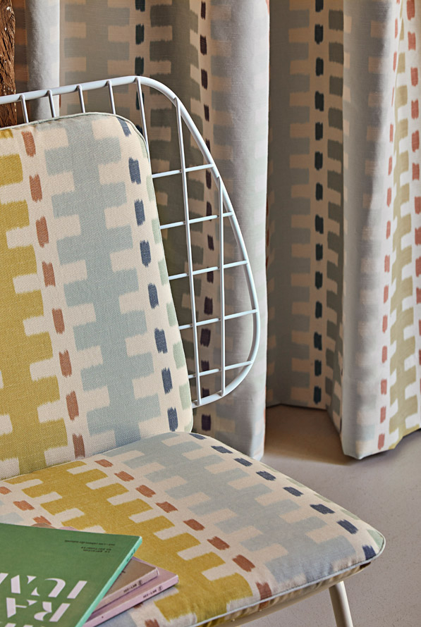 A magnificent warp print with a colourful, cheerful geometric pattern, GUSTAF is characterised by its bright, delicate shades.