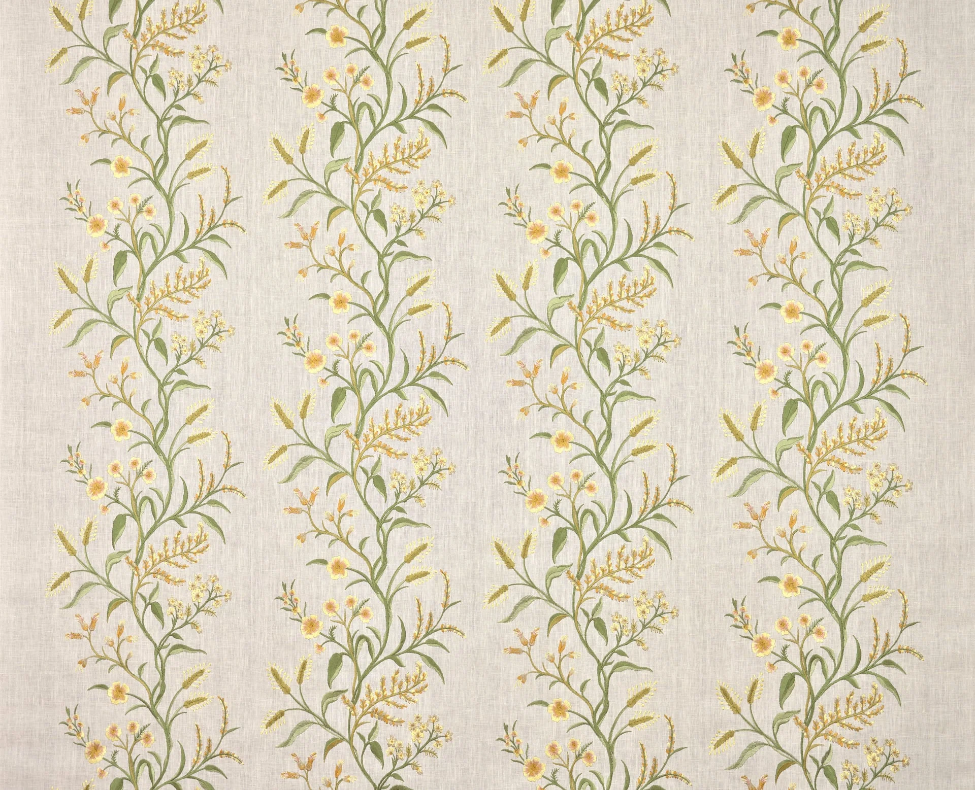 AMARANTE is a delicate embroidery on linen featuring a pattern of intertwined foliage and flowers.