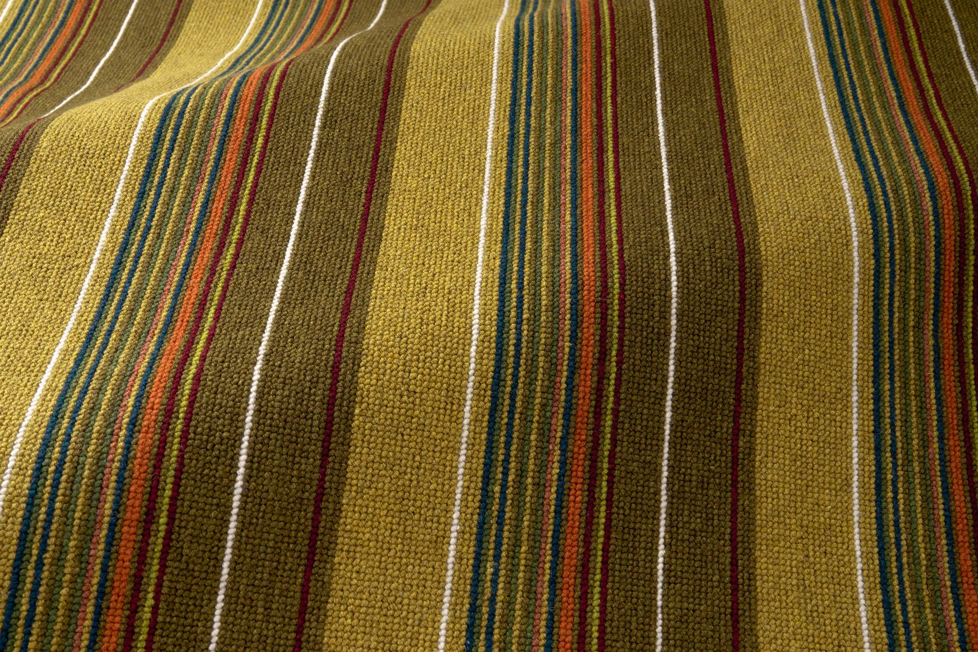 A magnificent épinglé wool stripe whose design and quality evoke timeless and comforting worlds. Its vibrant and luminous colours and dense weave make it a perfect complement to all of Maison Pierre Frey's collections.