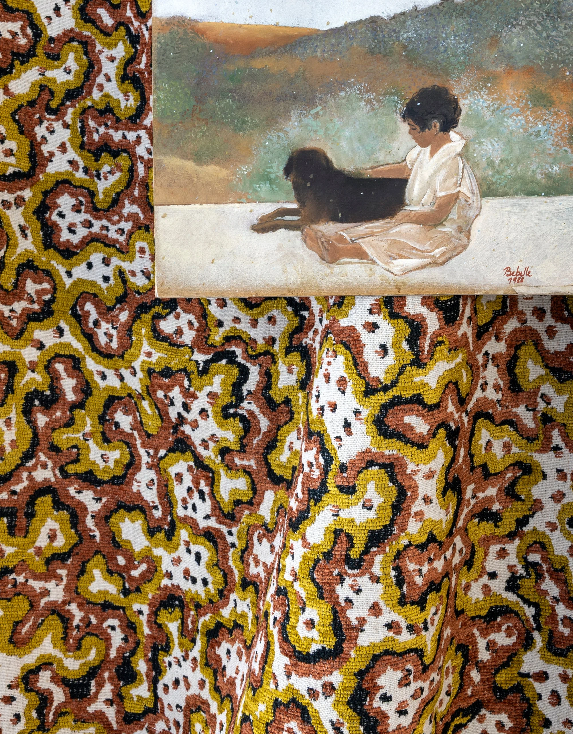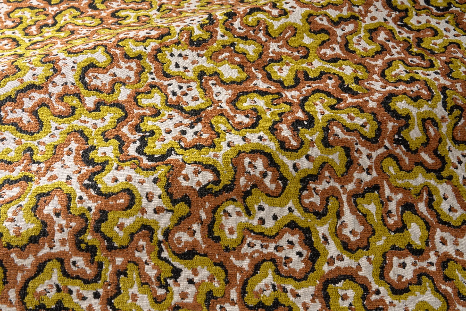 A motif reminiscent of moss seen up close, of seaweed, a vegetal world that Isabelle de Borchgrave is particularly fond of. It is a pattern between abstraction and nature: the density creates a living, almost tactile material. A fabric of life, painted with instinct and finesse. Its adaptation into a jacquard combining natural materials and chenille perfectly captures this organic and intense spirit. A quality particularly suited for seating use.