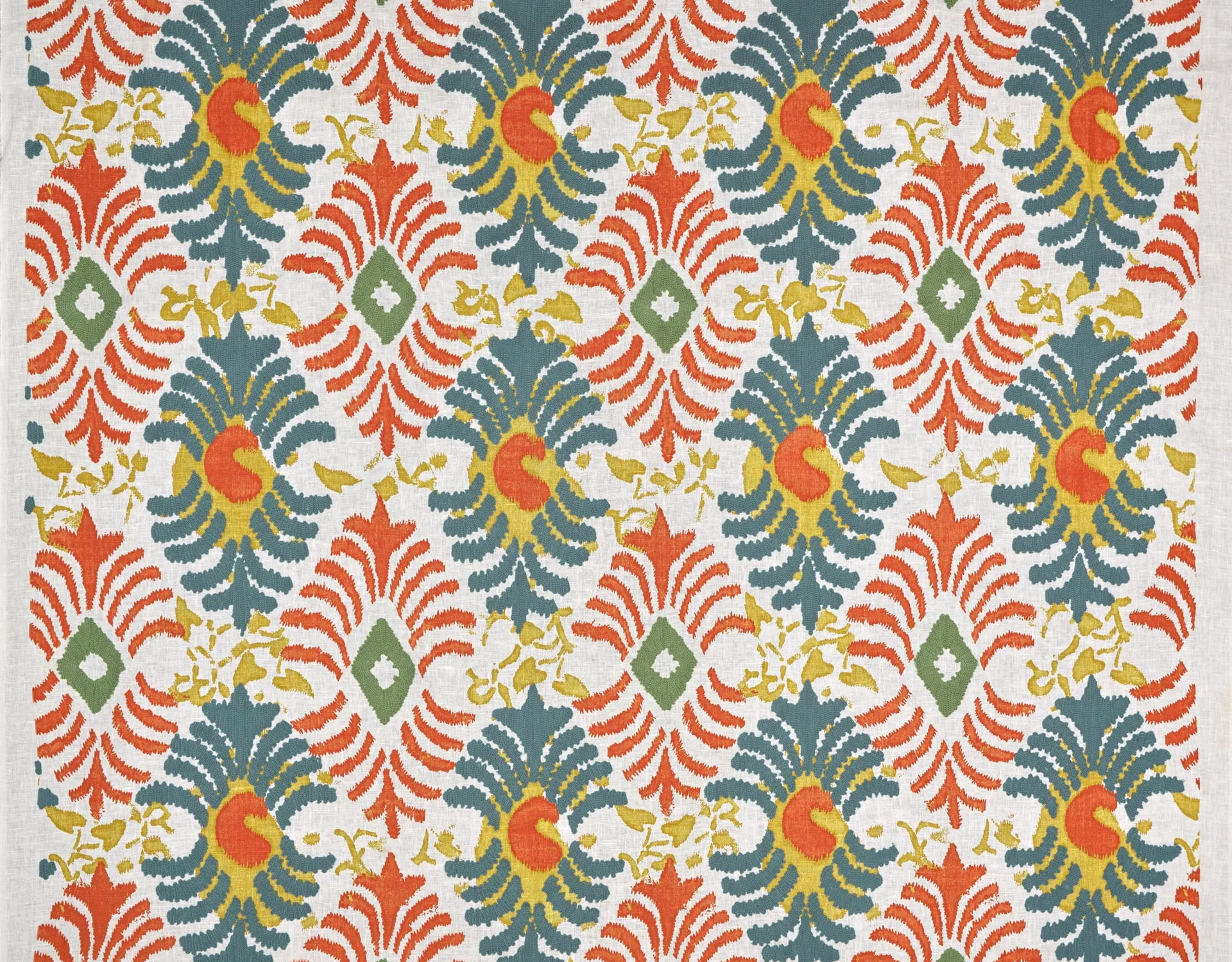 This motif evokes lively energy, colourful carefreeness and a celebration of joy. For the artist, it tells a story of transmission: that of textiles that have travelled along the Silk Road through time. The kaftans, made from magnificent ikats lined with printed fabrics, offered the opportunity to present oneself in the best possible light.