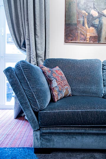 Baroque and theatrical Genoa velvet in Second Empire style enhanced with Nattier blue.