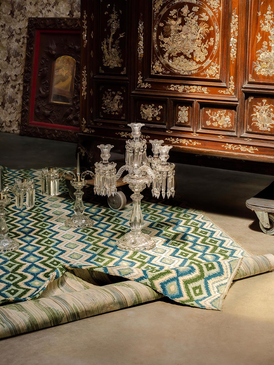 Carved velvet with ikaté inspirations, VOUVRAY presents a set of stripes composed of rhombuses with elegant colors and characteristic of the Maison Le...
