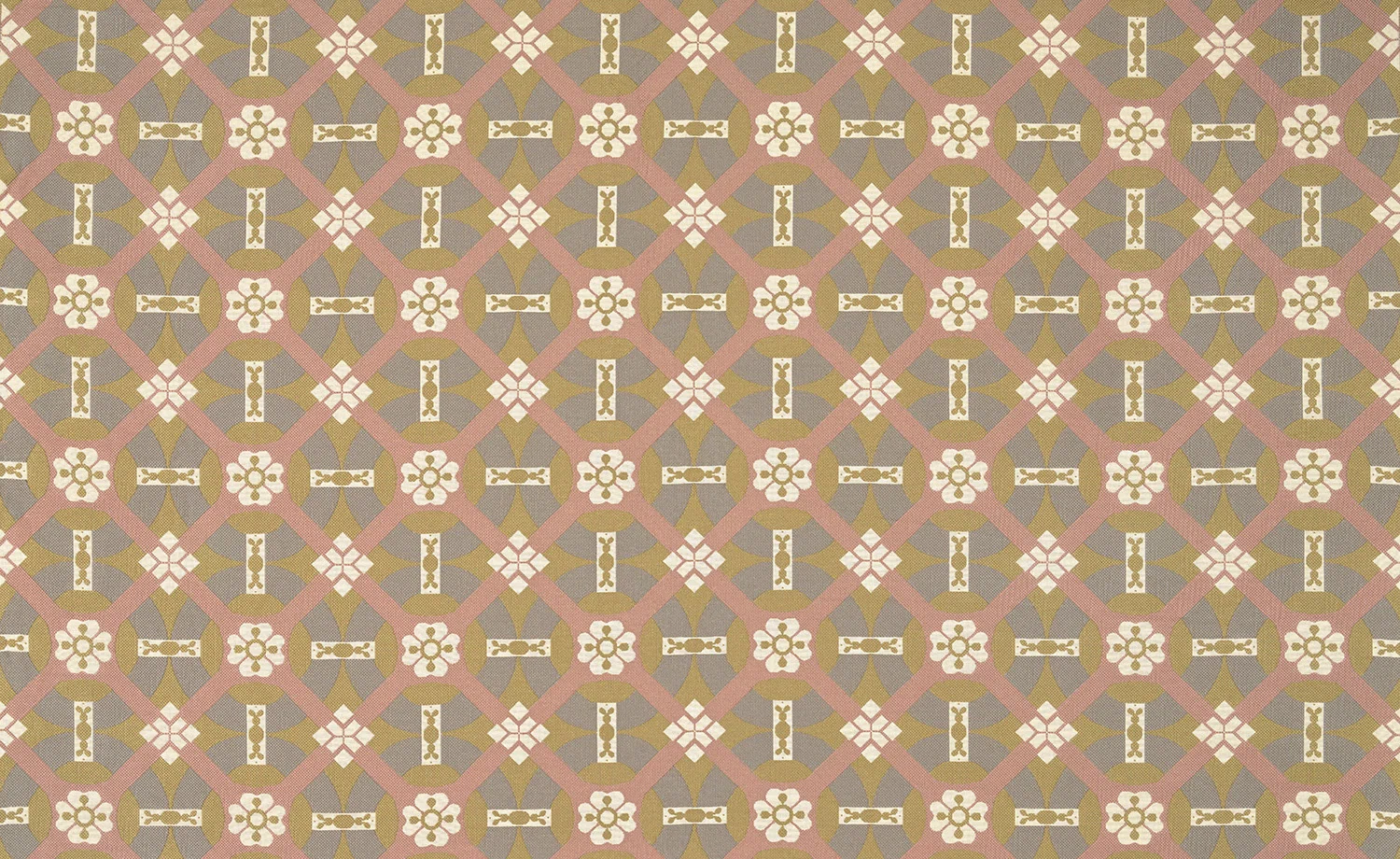 Inspired by a petit point embroidered textile dating from the second half of the 19th century and preserved in Pierre Frey archives, CASTELNEAU is reminiscent of cement tile patterns. A link between the past and the present, this interlacing of flowers offers a graphic and floral design that is perfect for any setting.